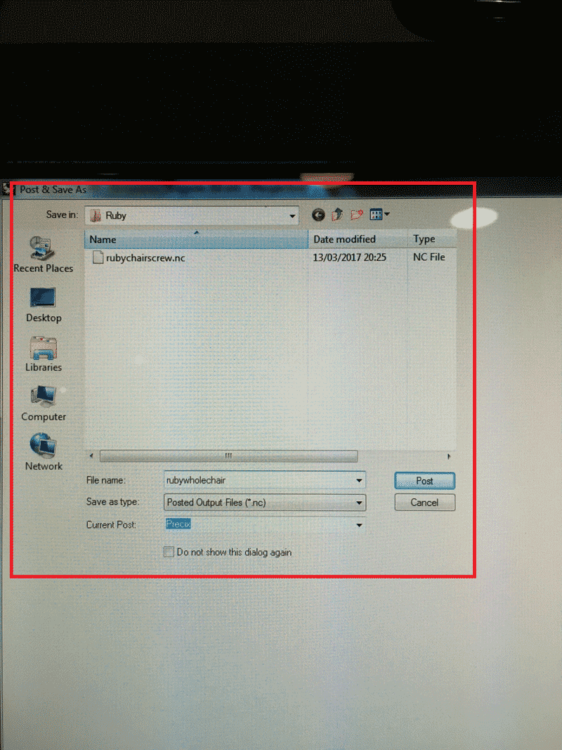 Right-click the logo which looks like a wheel and choose 'Mach 3'and which is the 'Precise'. The extension is .nc .