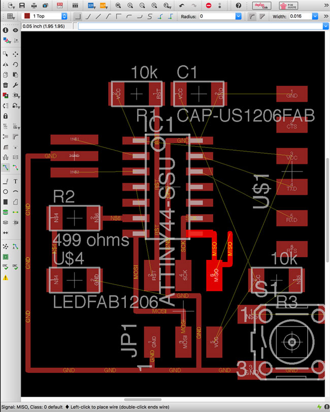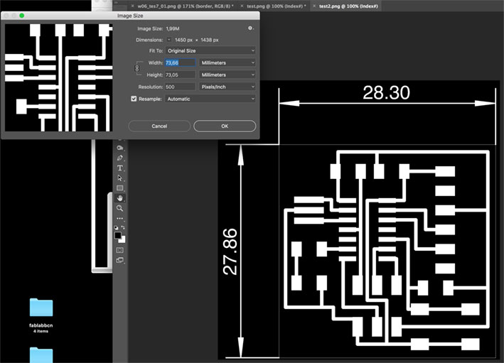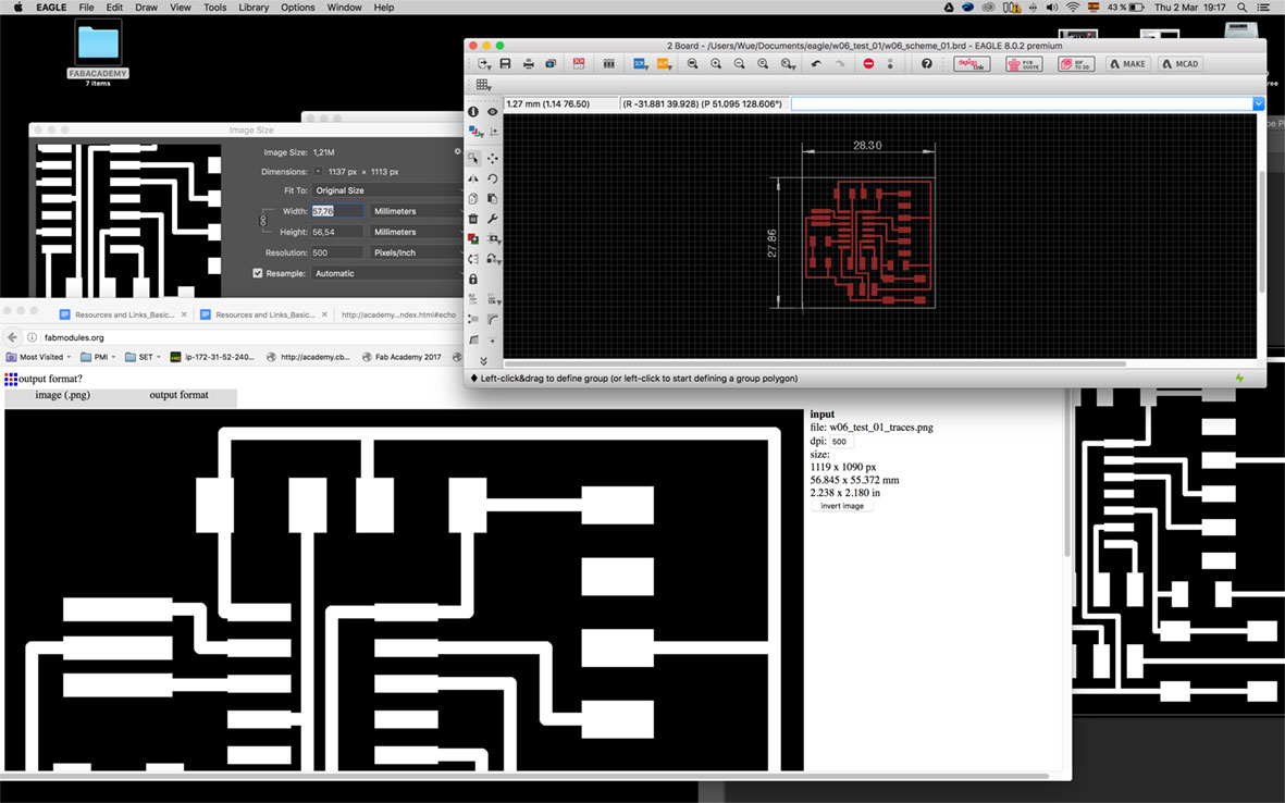 When I checked on the FabModules, I realised I had lost the size of the board, and I tried to find where the problem adding some dimensions on Eagle as references.