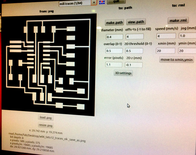 Same process ad we followed with the FabISP. First the traces and second the cut. Image shows the final levels I used to get it cut.