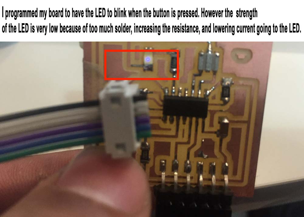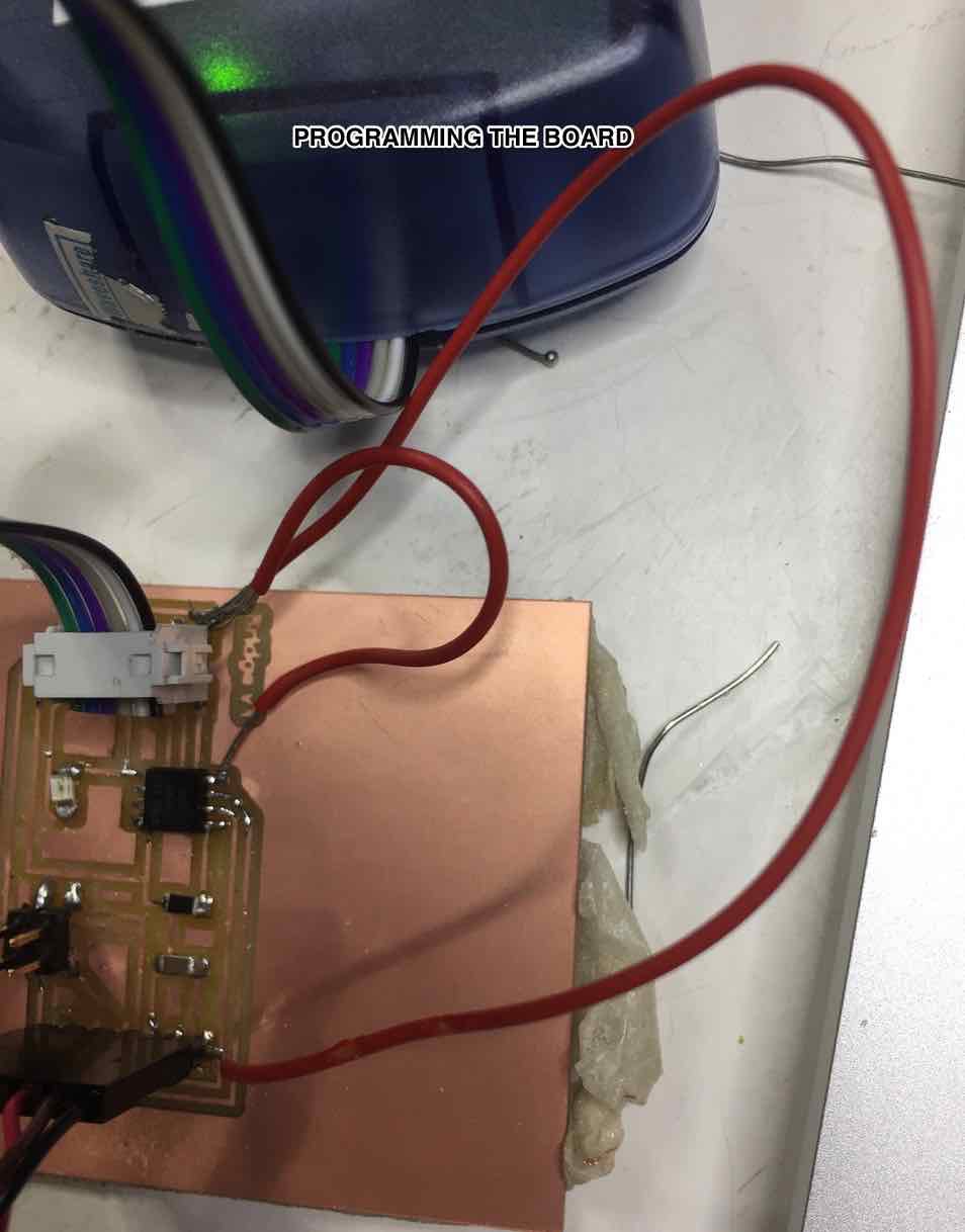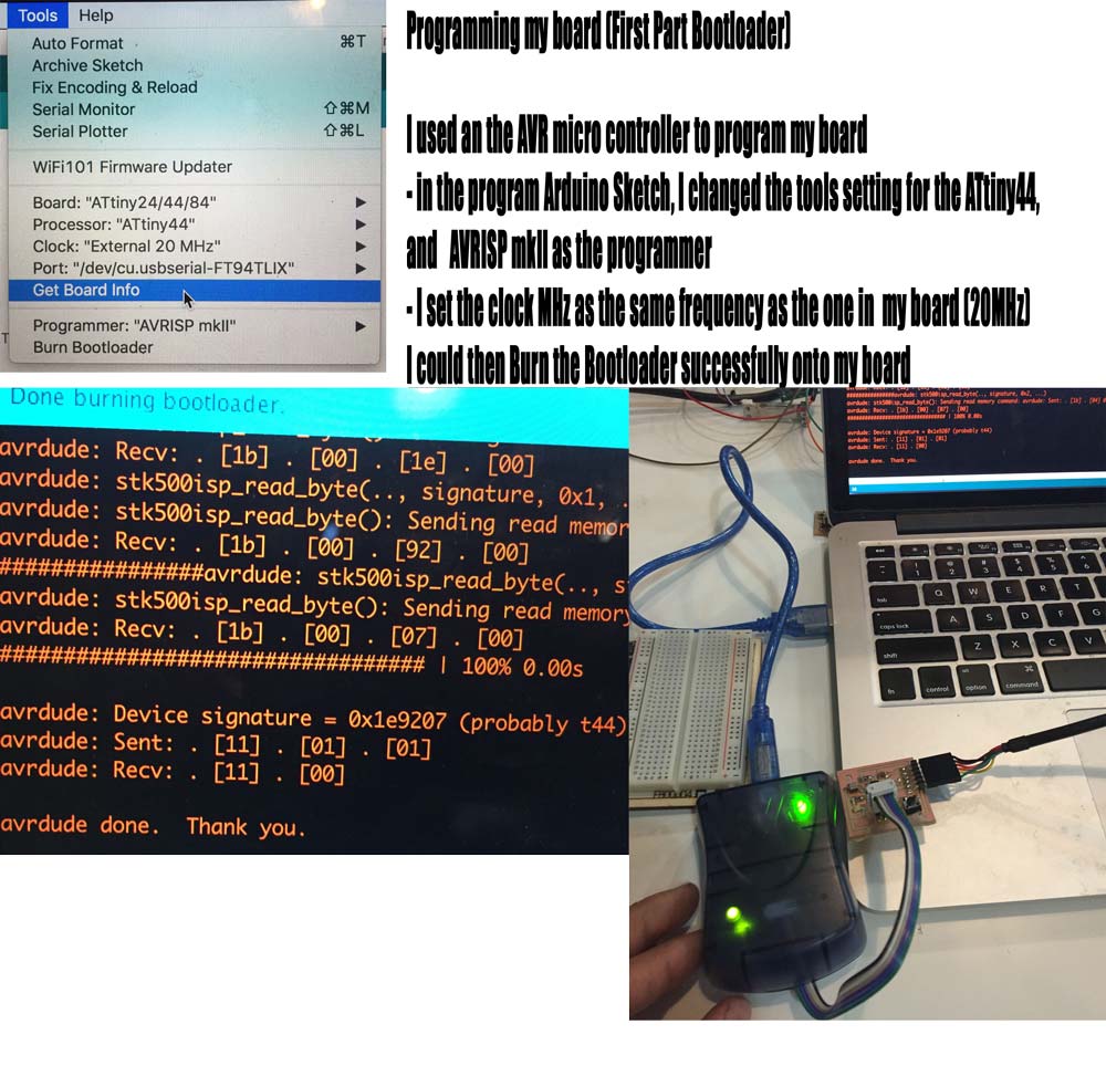 Now with the board ready to be programmed, i used the make file (link to Makefile) to program the board. To do so I went into the terminal on my mac, use the "CD" command to place myself where my hello.load.45.c file was, and then typed the command below: