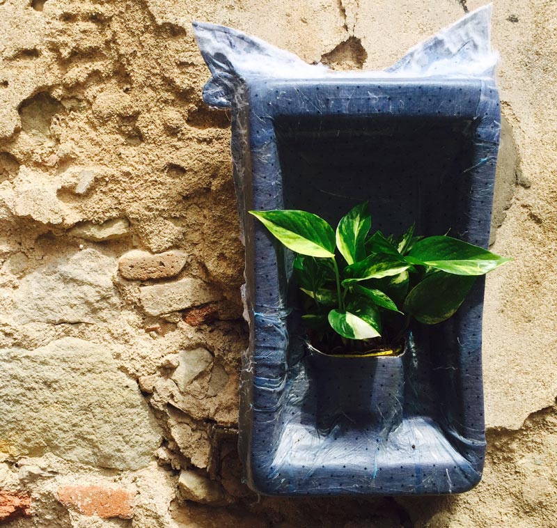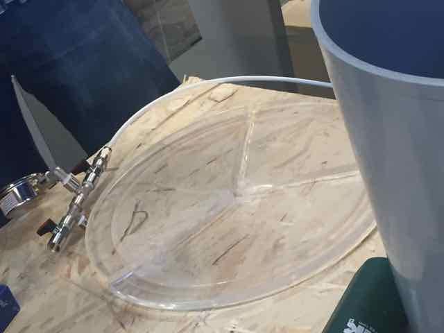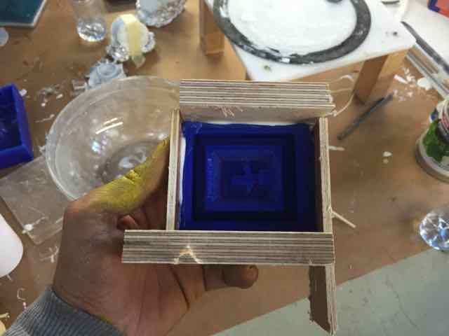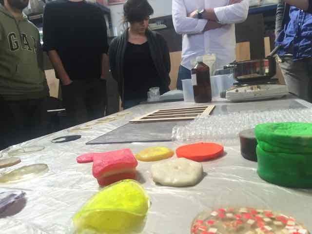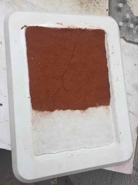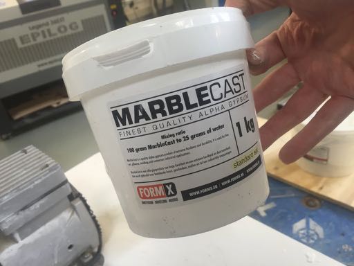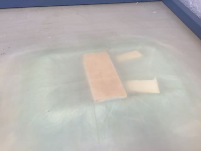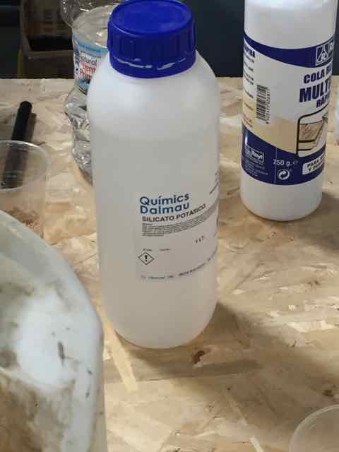 Once the layers of fabrics have been recoverred by the mix, place them on the mould. Previously I added a layer of non sticking Polypropylene plastic Sheet (green color) onto the mold. Then add a layer of blue respirant mateial onto the fabrics, then a layer of abosrbent coton, covered by another layer of green platic to protect the vacumm machine. Once this is one add a layer of plastic (general use) at the bottom and top of your moudl to avoid making the vacumm machine dirty with expoxy » I also cut some polystyrene shapes to act a negative mould. For the second attempt i used a lighter color fabric, and made it as a 3 layers composites. The objective was to have a better transparency of the composite result. The other difference is that I was way more concentrated (learned from my previous composite) when doing this composite. This is what we did..." We had a very interesting worshop on natural composites. As a result I wanted to create a plate with 2 different materials. On one side is 1 volume of potassium silicate K2SiO3, and 1 volumne of water with marble grains (mixed until i have the right consistency (wet but not almost solid), this is the white part. On the other side, 1 vol of potassium silicate, and 1 volumne of water with clay. I then put the plastic tray in the oven at 50 degrees, then let it dry outside