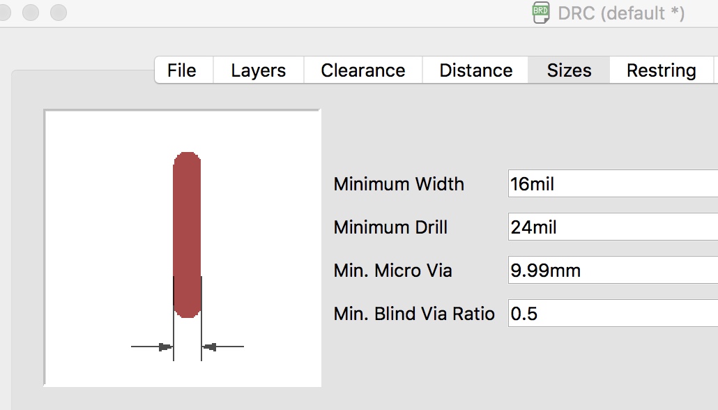 From Schematic I went to the board view, checked the settings for the autorouter before running it. I was pleased with the results of the autorouter and only had to perform a few manual adjustments.