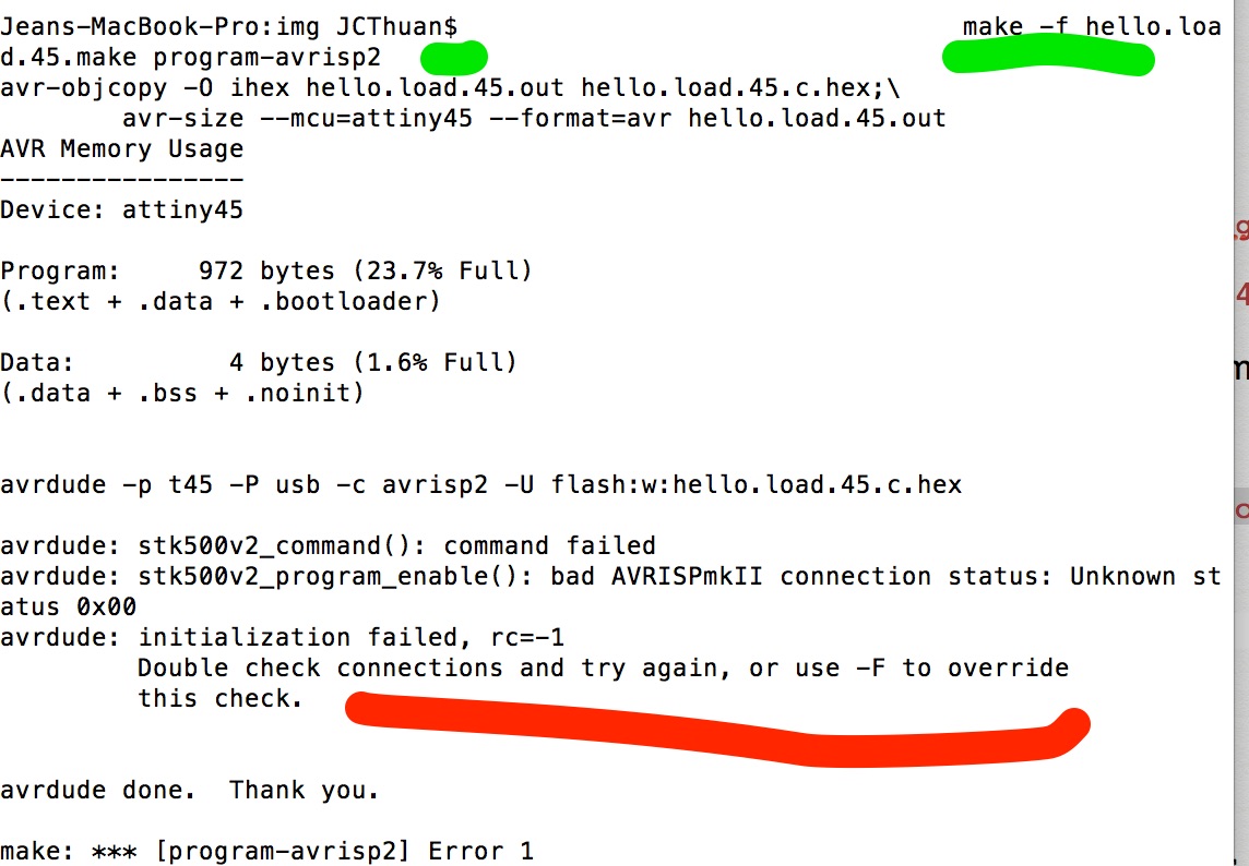 (2) make -f hello.bus.45.make program-avrisp2