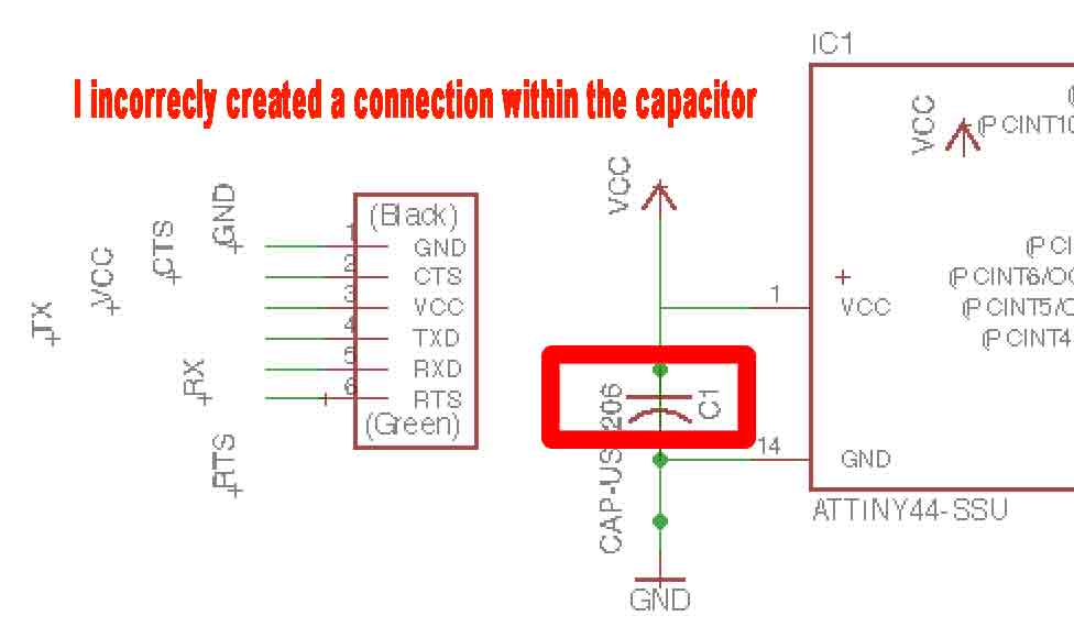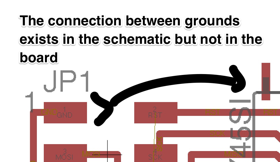 I realised one connection specified in the shematic in Eagle never made it to the board.