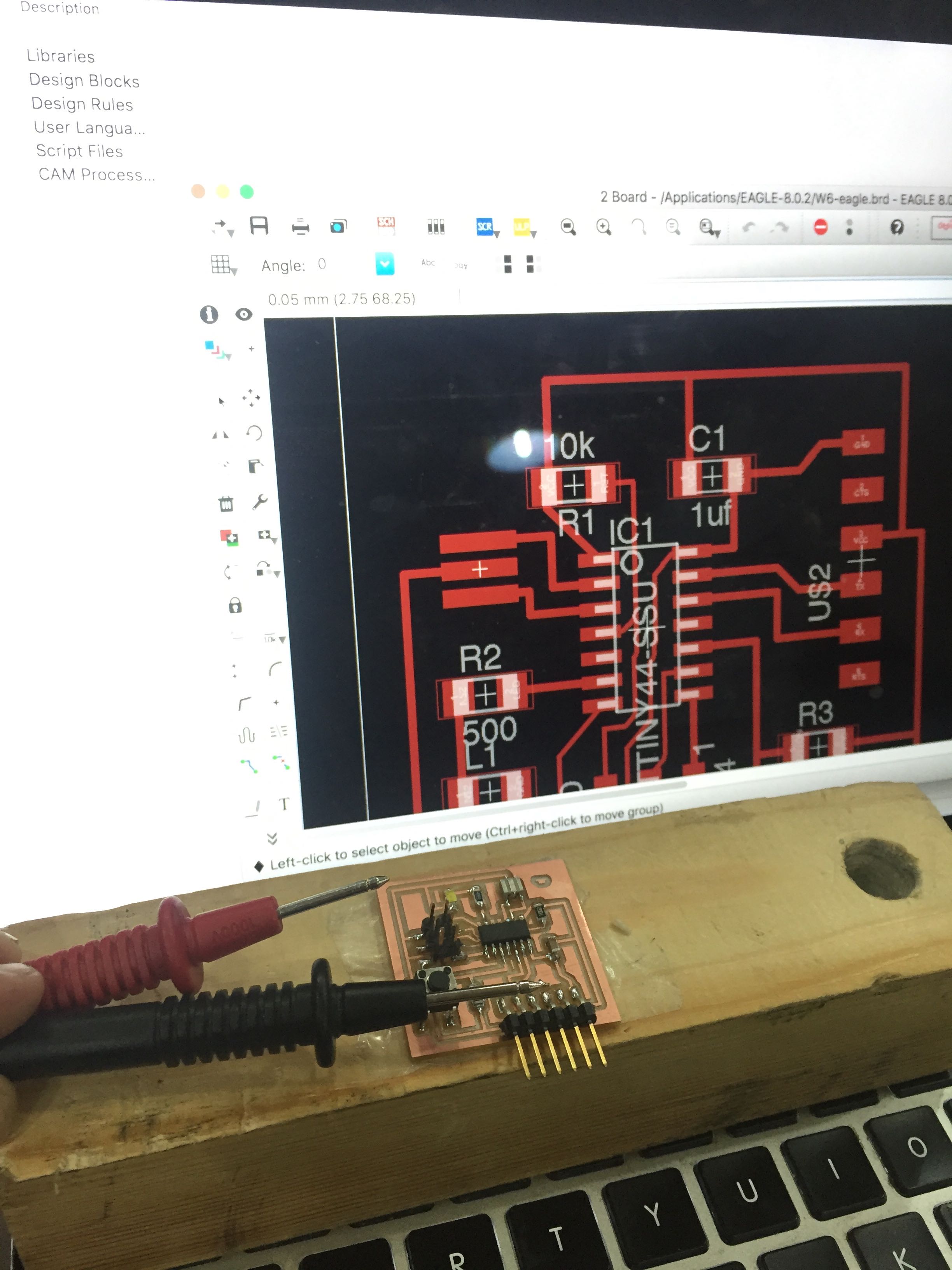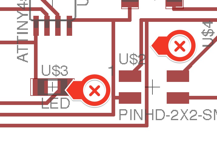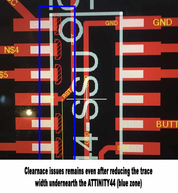 After changing the routing, I managed to have 0 errors clearance in Eagle. This is interesting because I still had erros I could see once Rolland Mill was similutating the drill, and still one left after the drill was completed. So there was a bit and going back and forth with producing the board.