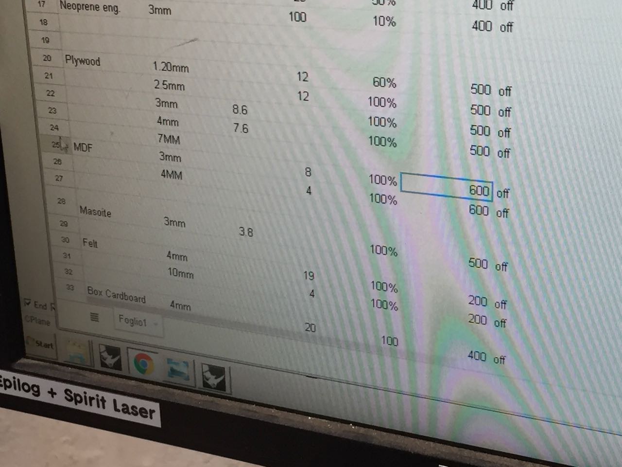 To test the kerf I designed quickly a 10mm by 10mm square and Rhyno and lazer cut it. It is also a good way to test if the power/speed/resolution are adequate (not too much but sufficient enough) to cut through the materials. You then mesure the size of the square that was cut and see the difference in width (and divide by 2) to have the kerf. You can also find a more accurate method to measure it from James Williamson (that havent tried)- link here