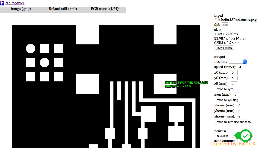 | Machines | Roland Milling machine, Soldering equipement |