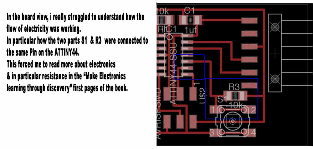 I initially started this assignement by designing a board for a microphone. However after 2 attempt in milling the board & soldering, I paused the assignement, that I started again in September 2017. In a way I am happy to having to redo it because it gave me the time to better understand it, with less time pressure. The result of STEP RESPONSE board worked. However with a bit more time I would have liked ot create something more creative that measure electrical conductivity, like combining this with plants & sounds. |
