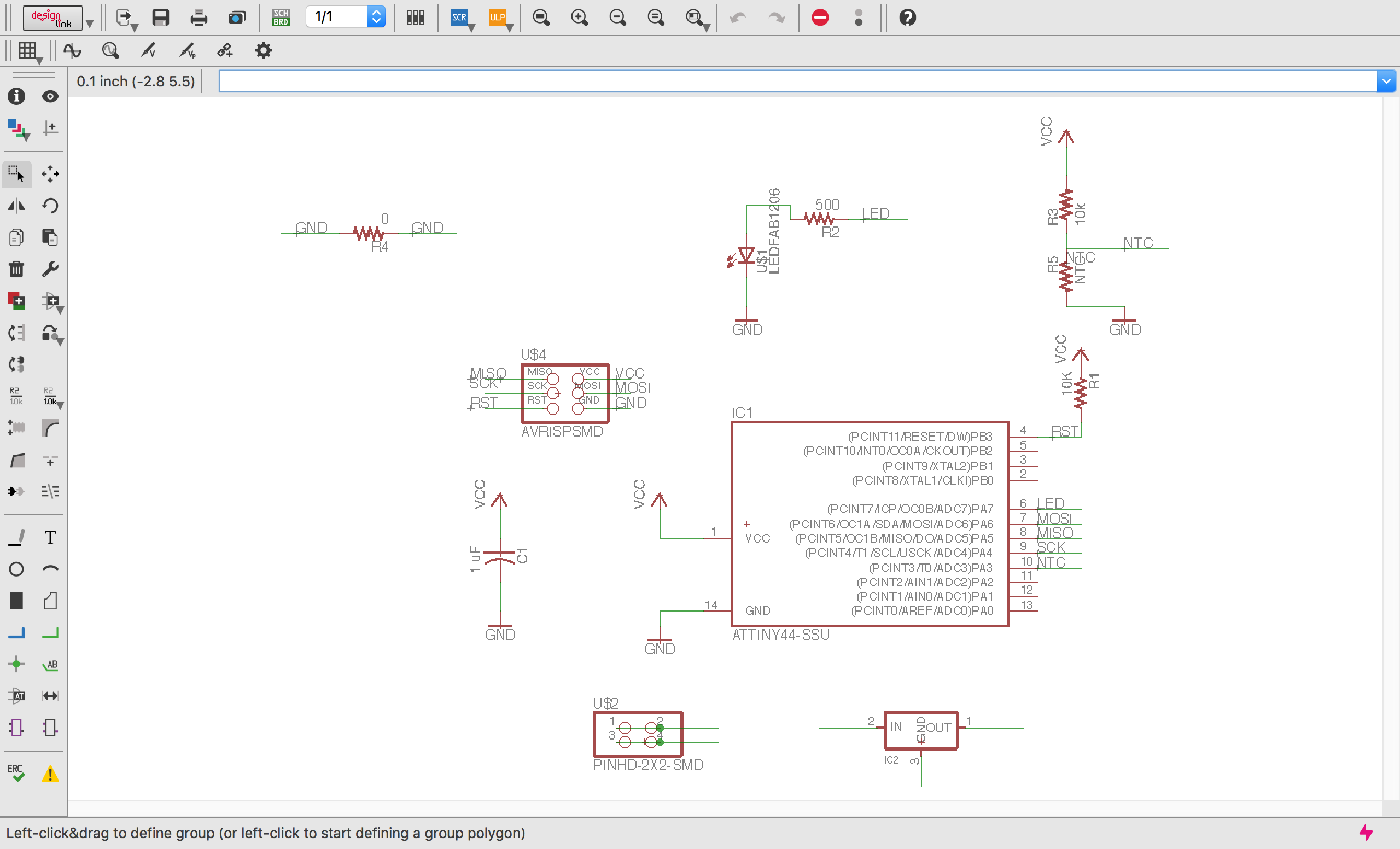 First, I prepared schematic in eagle. (I used Attiny44.)