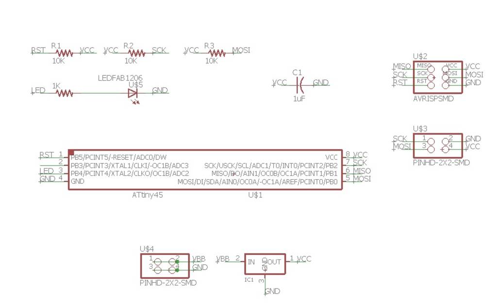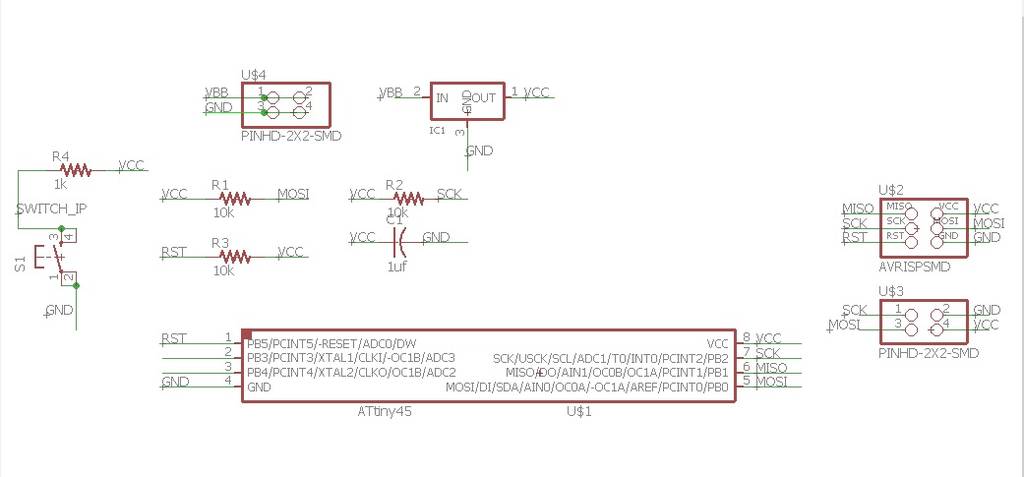 I have interfaced switch to one attiny 45 board (Slave board)& led to another attiny45 board (Master board).