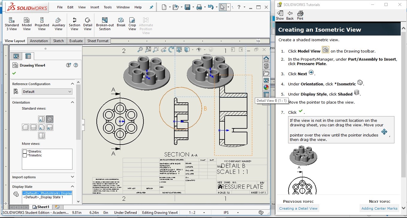I further learned to create 2D drawings from the 3D model, to add isometric view of model in the drawing.