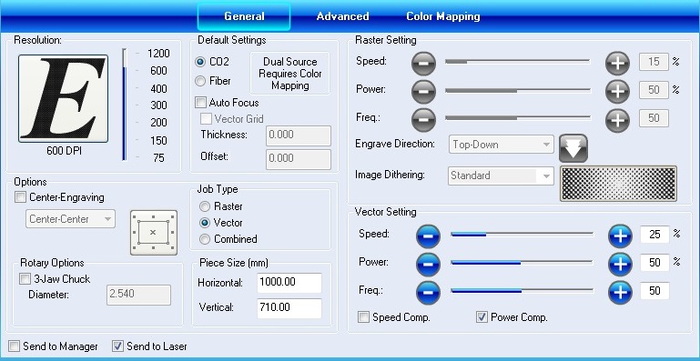 Job type = Vector (Since all cuts were straight lines, so selected vector)