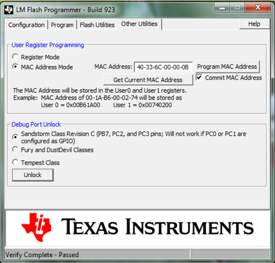 LM Flash ProgrammerBelow steps are required to be followed for programming the MAC address: