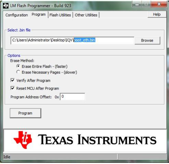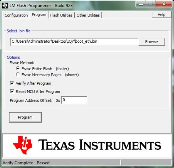 LM flash programmer can also be used for programming the board. For programming the board using LM flash programmer follow below mentioned steps: