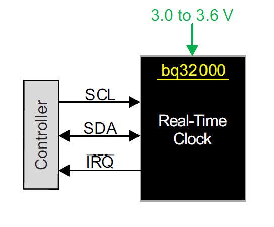 rtc_1A master device, usually a microcontroller or a digital signal processor, controls the bus. The master is responsible for generating the SCL signal and device addresses. The master also generates specific conditions that indicate the START and STOP of data transfer. A slave device receives and/or transmits data on the bus under control of the master device. BQ32000 operates only as a slave device.