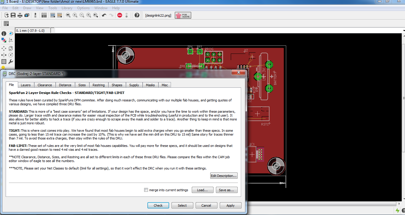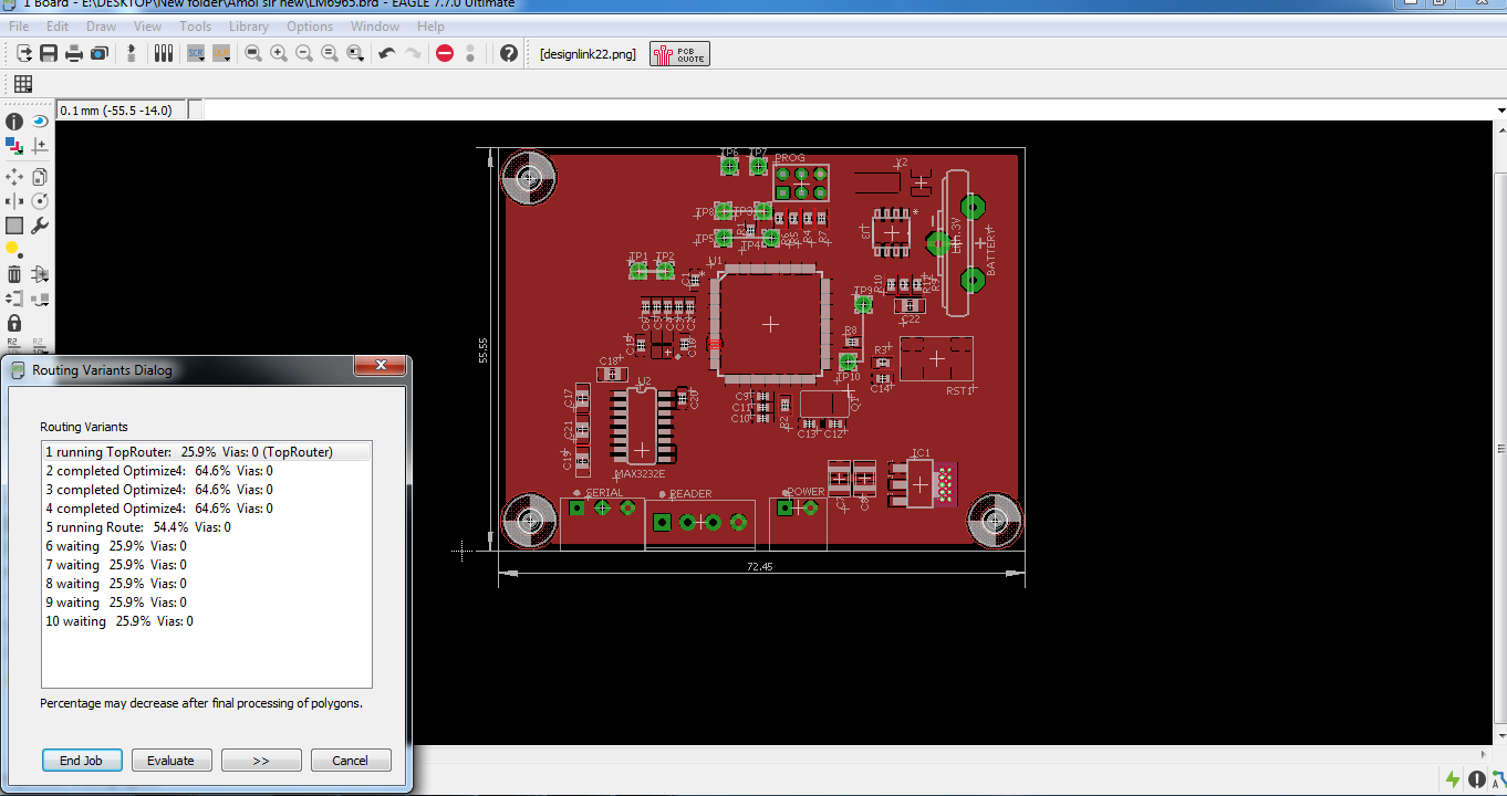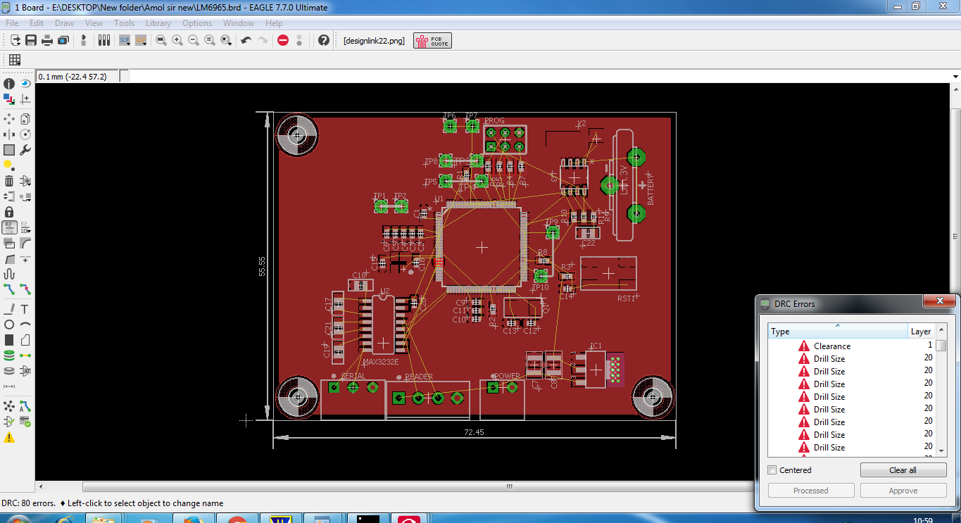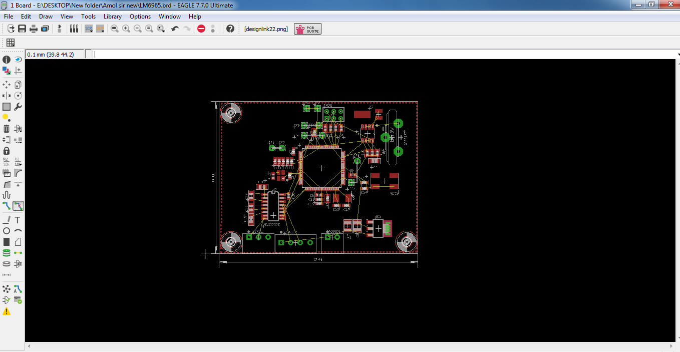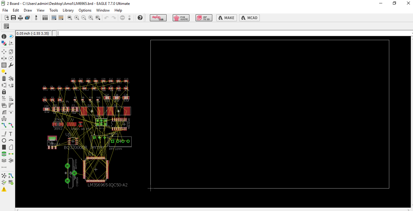 Preparing layout using EagleIt was a very though task to prepare the layout on single layer board as there are many power and ground connections in 6965.