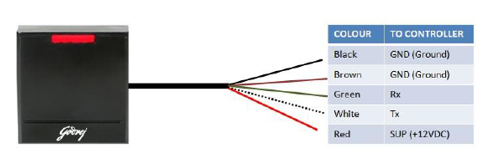 Reader communicates the data to controller either on serial(RS-232) or wiegand(Three lines D0,D1,GND)