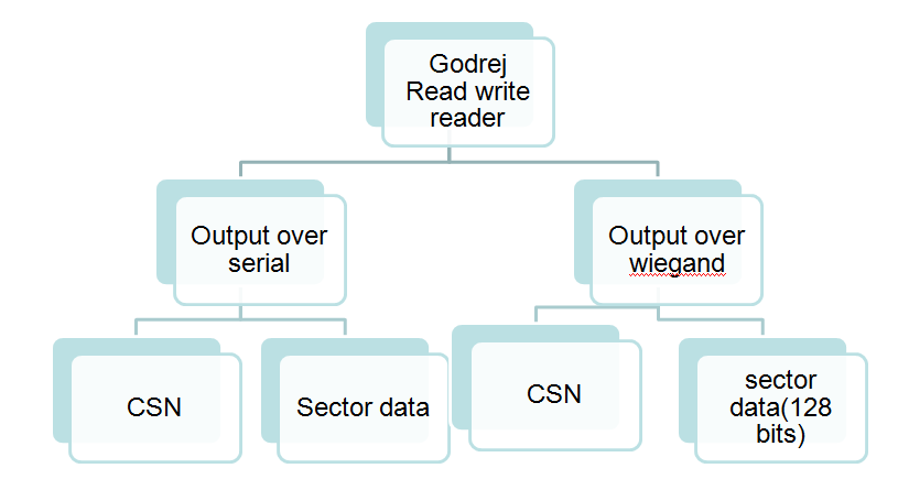 In Godrej we are using Smart card reader which reads data stored inside 1KB Mifare(ISO14443)Smarts cards.