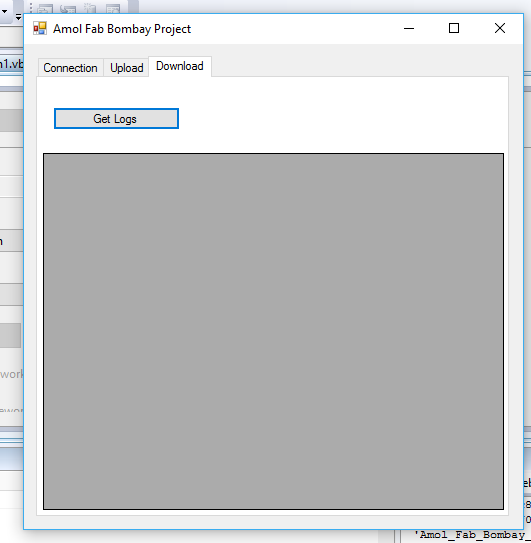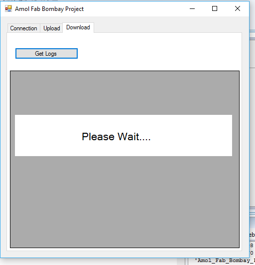 Tab 3 : It is used for downloading log from the controller. When user click on Get Log button, logs from controller are read and shown on display grid. Also the logs gets stored into text file at location were software exe is kept.