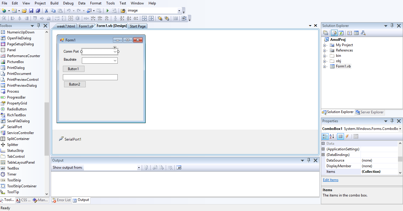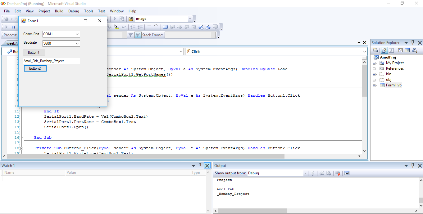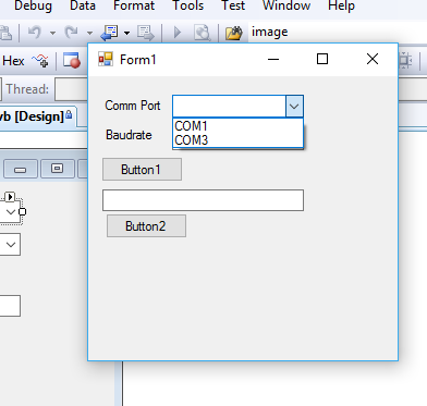 Using button 1 we can open the port and button 2 was used to send data written onto text box on selected COM port at selected baud rate. For testing whatever data listen on serial is shown in output window. For testing purpose have shorted RX and TX of my laptop serial port so if every thing is working okay should be able to see the data I am sending on debug output window.