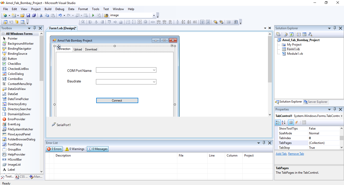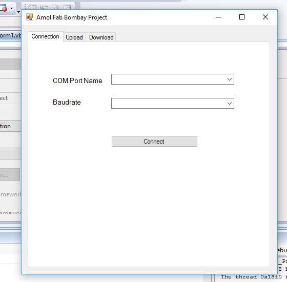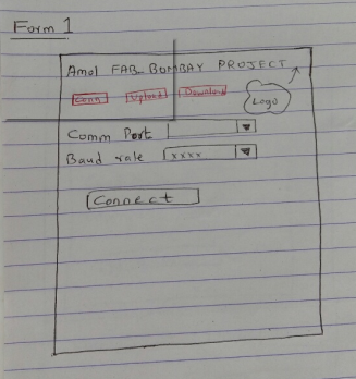 Tab 1 : This form will be used for establishing connection with the controller board. Using drop down user has to select the COM port and baud rate and then click on connect button. If connection is successful Connection success message will be displayed else Error in connection message will be displayed.