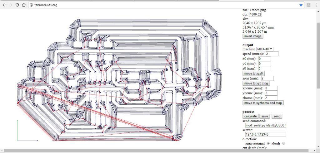 The below image shows the traces in the fab module using MDX-40 milling machine