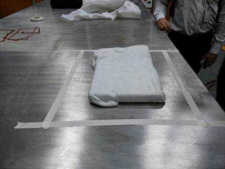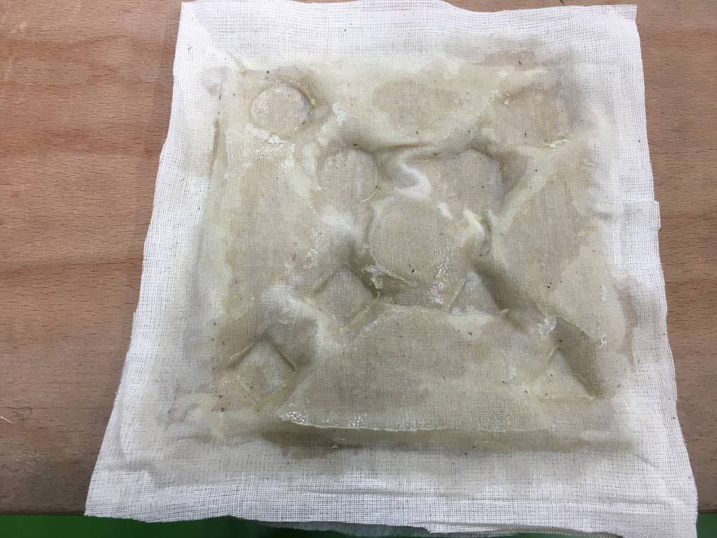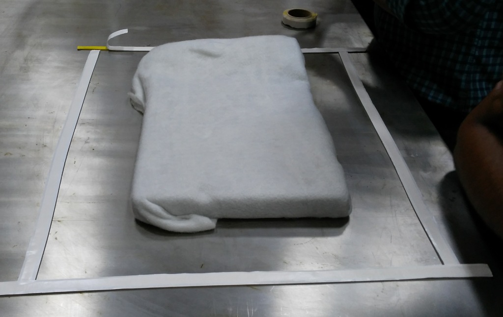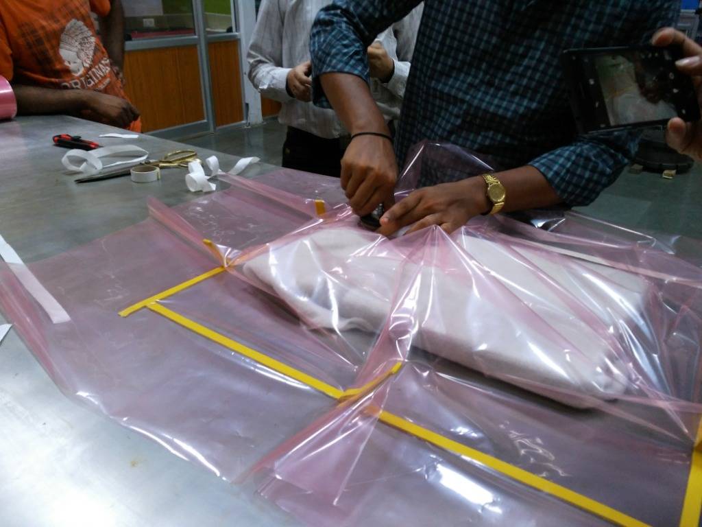 Step 10: After 10 minutes remove the mold from the vaccum bag & check if the impressions of the mold are prominent on the composite layers. Below images show the mold being retrieved from the vaccum bag but the impressions of the mold on the composite clothes is not that prominent.