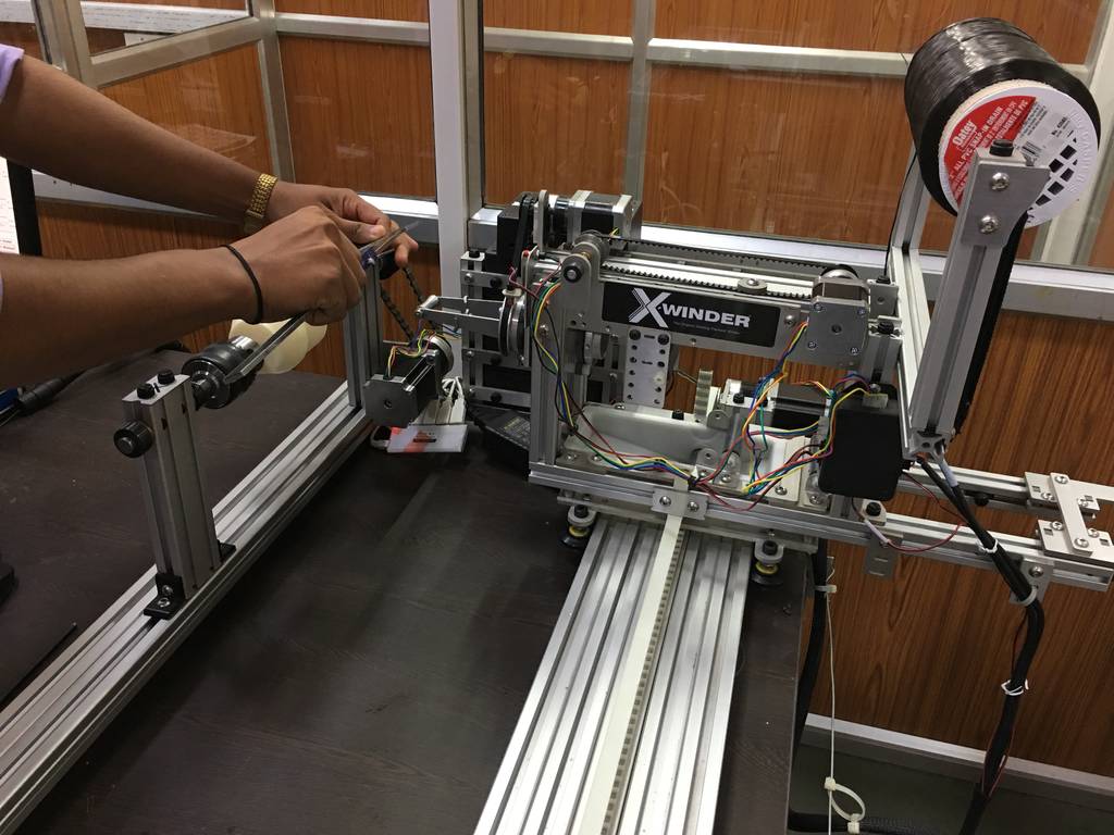 To check the process of winding we took a metal cylindrical hollow tube for winding as shown in below pictures.