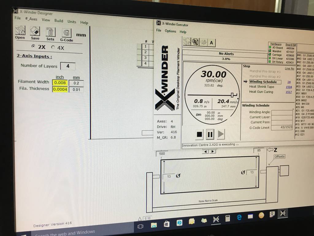 The parameters of winding were applied in the Software & after the setting was done & the job clamped on the filament winding machine, we started the filament winding of the model as shown in the video below.