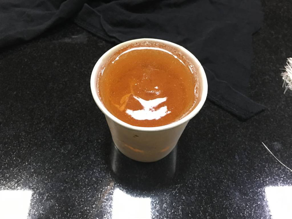 The mixture of these resins have a pot life of 10 - 15 minutes once the mixinf is done. If the solution is not used before this time it will get hardened & be of no further use. The below image shows that the mixture getting hardened when we used it above the stipulated time.
