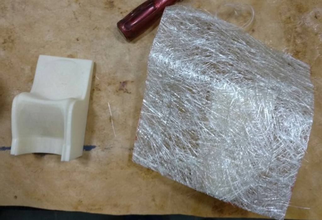 Hand lay up process is the simplest of them all & requires no more skill to prepare the composite. My team member had designed a model & did the 3D printing of the model as shown in the below image. The task was to lay up 2 layers of Fibre Glass in the shape of the model. Below I have also displayed the fibre glass sheet