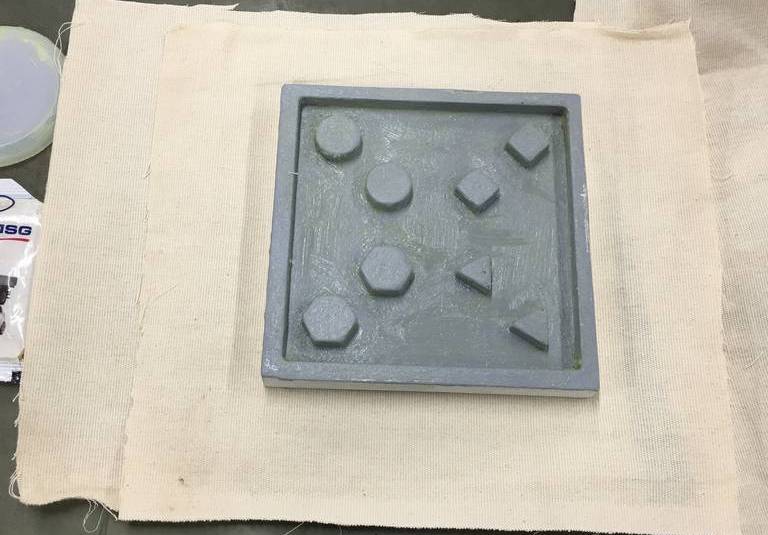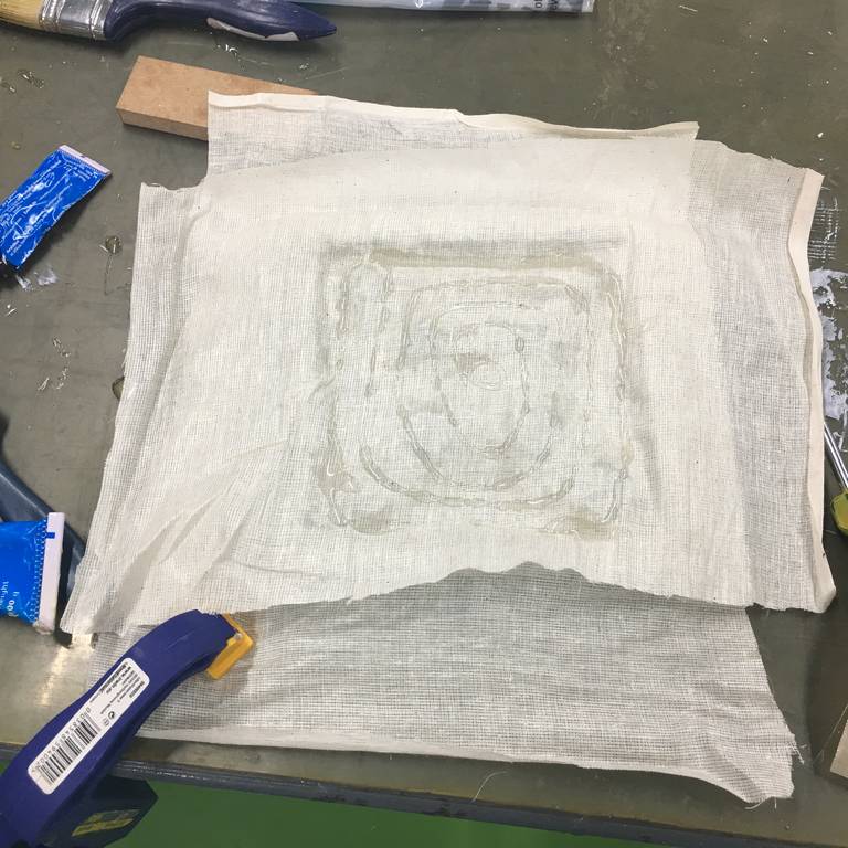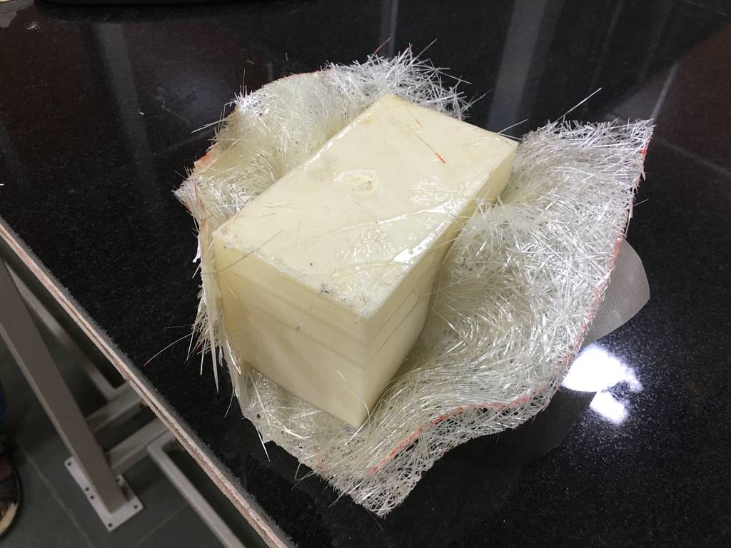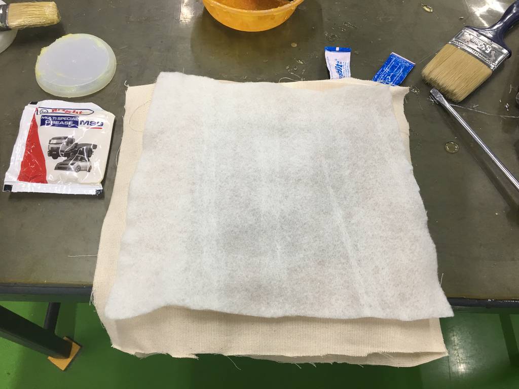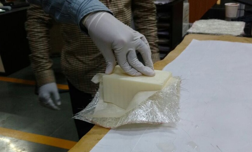 Step 3: Place the fibre glass layer on the model and hold on the corners to avoid the fibre coming out of the mold.