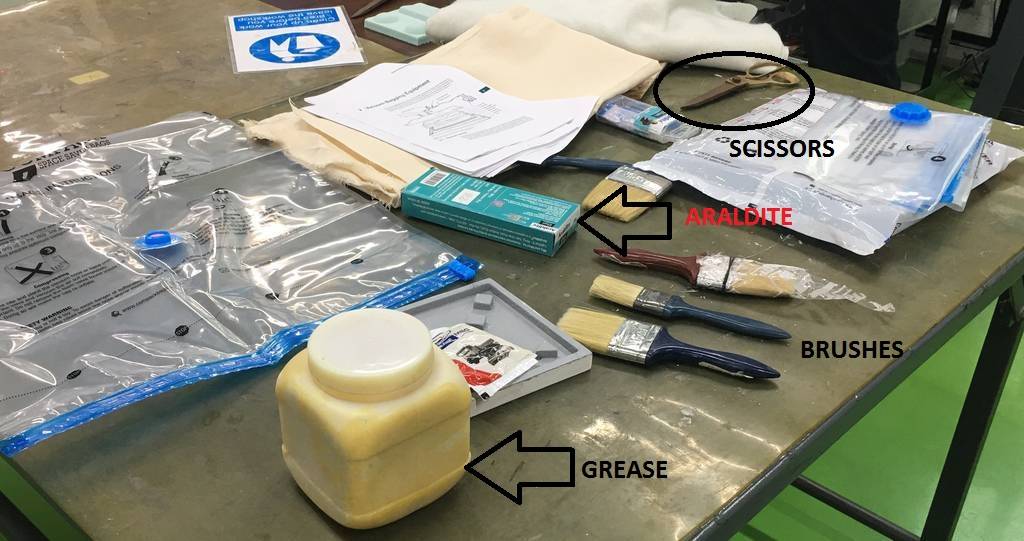 Step 3: Once the mold is ready for vaccum bagging, organize all the material required