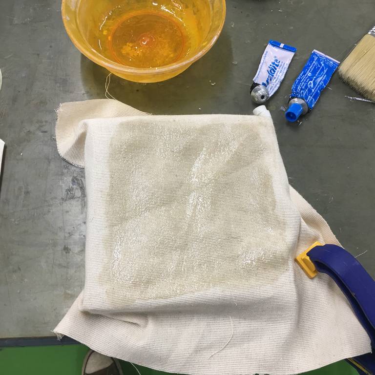 Step 6: Place another layer of glass fibre & repeat applying the resin mixture on the glass fibre.