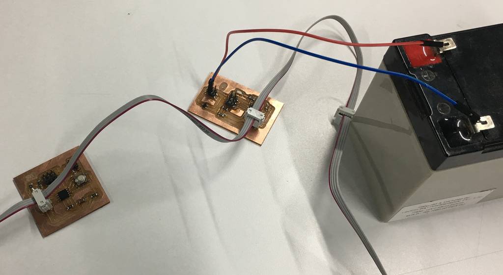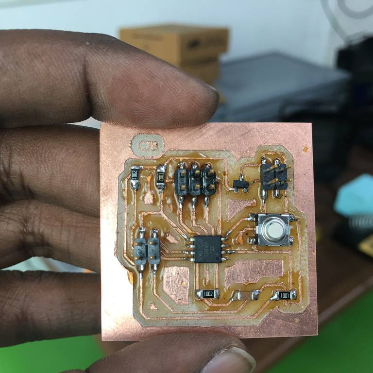 Whilst the boards are being milled on the machine I was preparing the program for both the communicator board & the slave board. I wrote the code using Arduino. The below images show both the boards after stuffing all the elements.