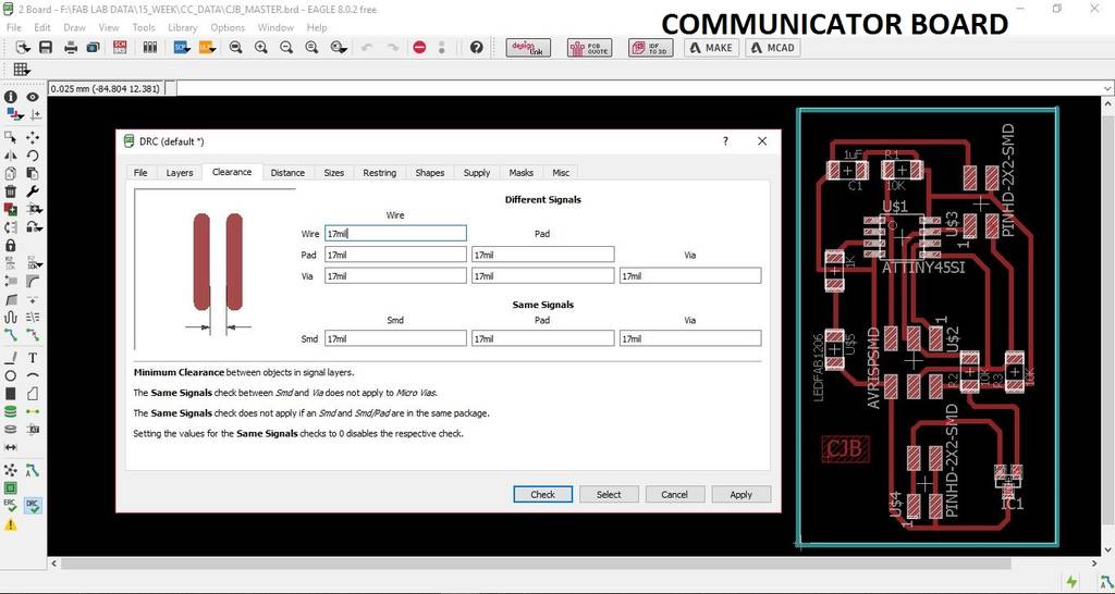 Then switch the tab to board & placing all the elements of the board to my satisfaction, For making the board I used the Auto routing option with the traces thickness 0.5mm an all the clearances kept at 0.4mill. Then I did the "DRC" check as shown in the below image.