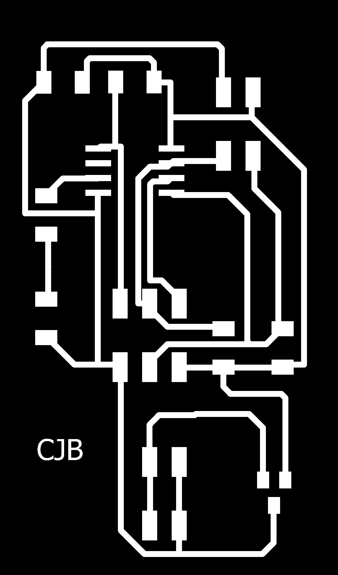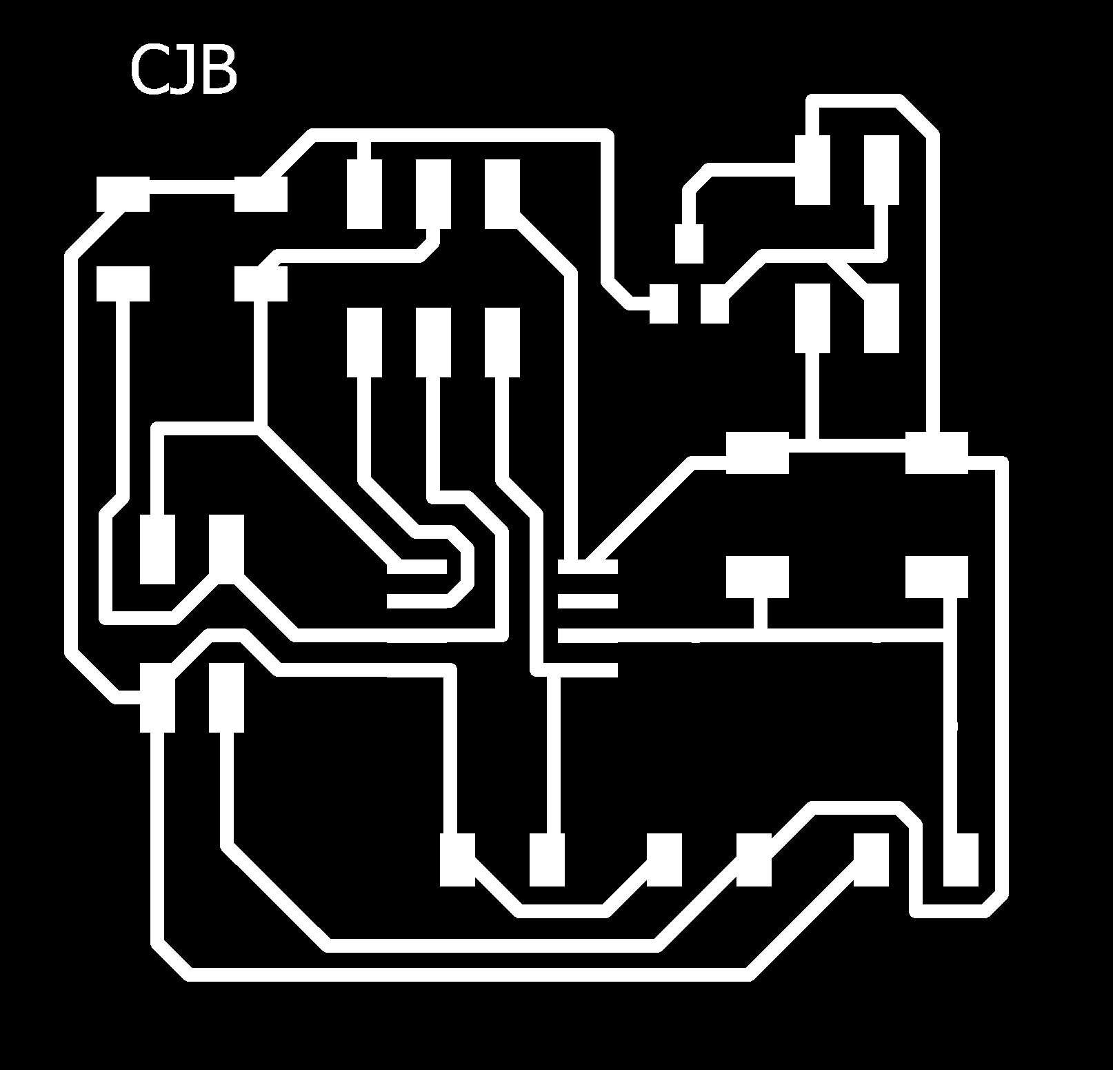 Then after the DRC check is done with no errors, export the traces & the outline into .png format to export this image to create the "rml" code using Fab Modules. Below images show the traces & the outline of both the boards.