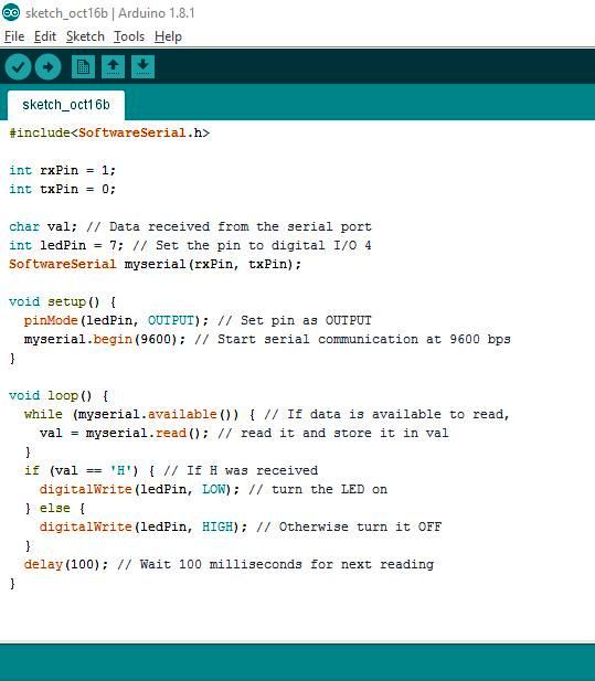 char val; // Data received from the serial port