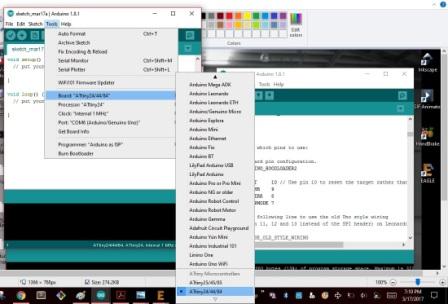 Step 7: Then in Arduino software in Tools --> Board, I selected ATtiny24/44/84. I also set the following selections in the Arduino software before burning the bootloader to the micro-controller.