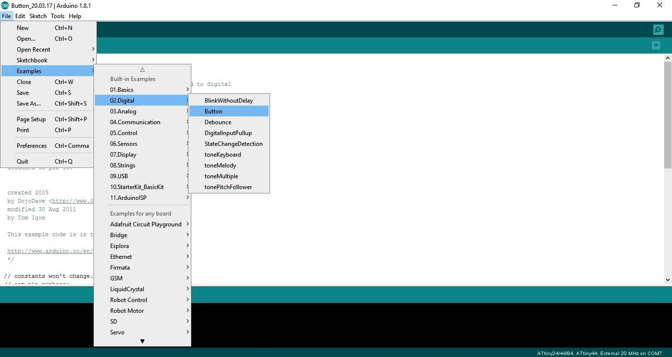 Step 9: Next, I added the Button program through Files --> Examples--> Digital --> Button