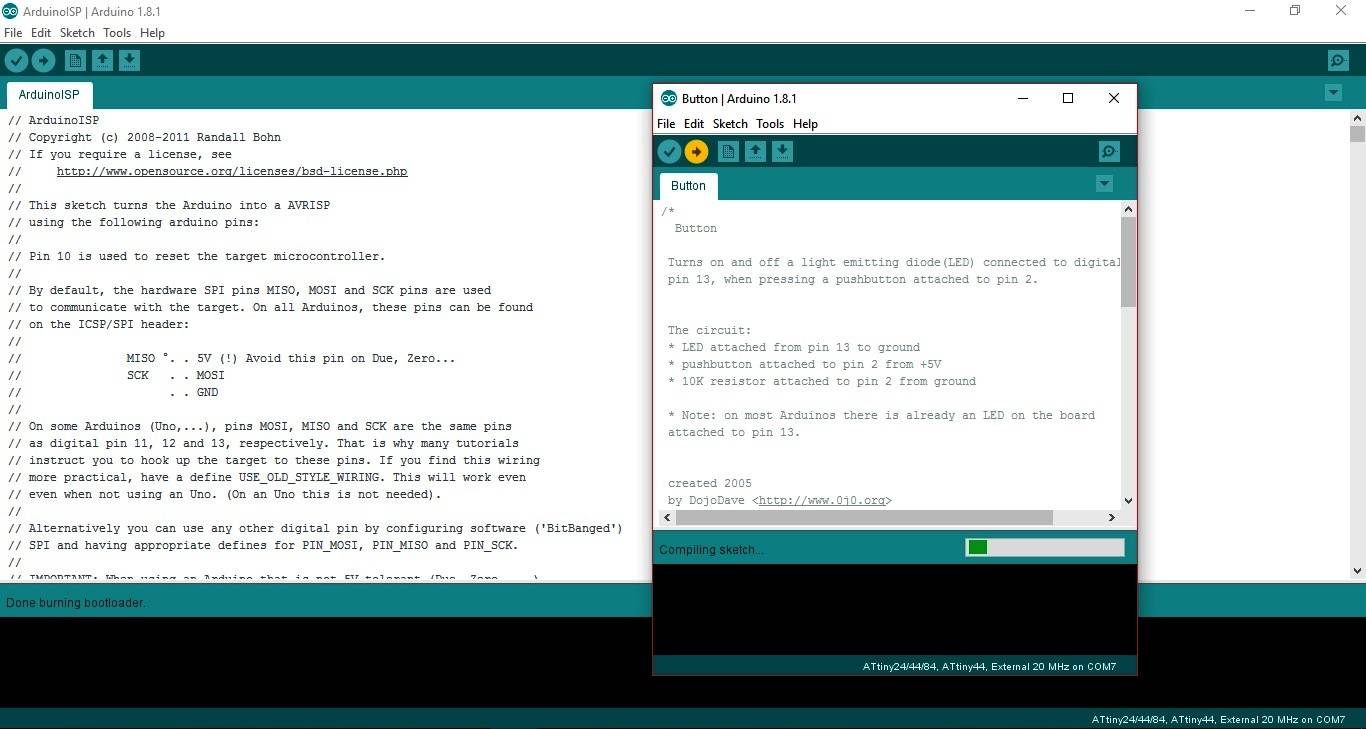 This completes making the "Arduino" board as a programmer. I disconnect the board with my computer