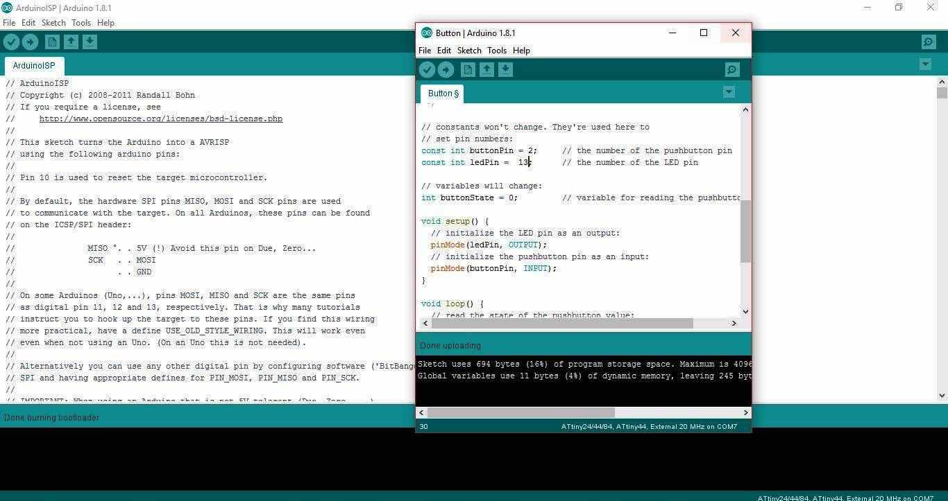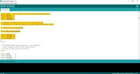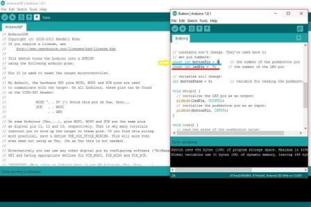 Step 12: Change the default settings of the LEDpin & ButtonPin from 13 & 2 to 7 & 3 respectively.