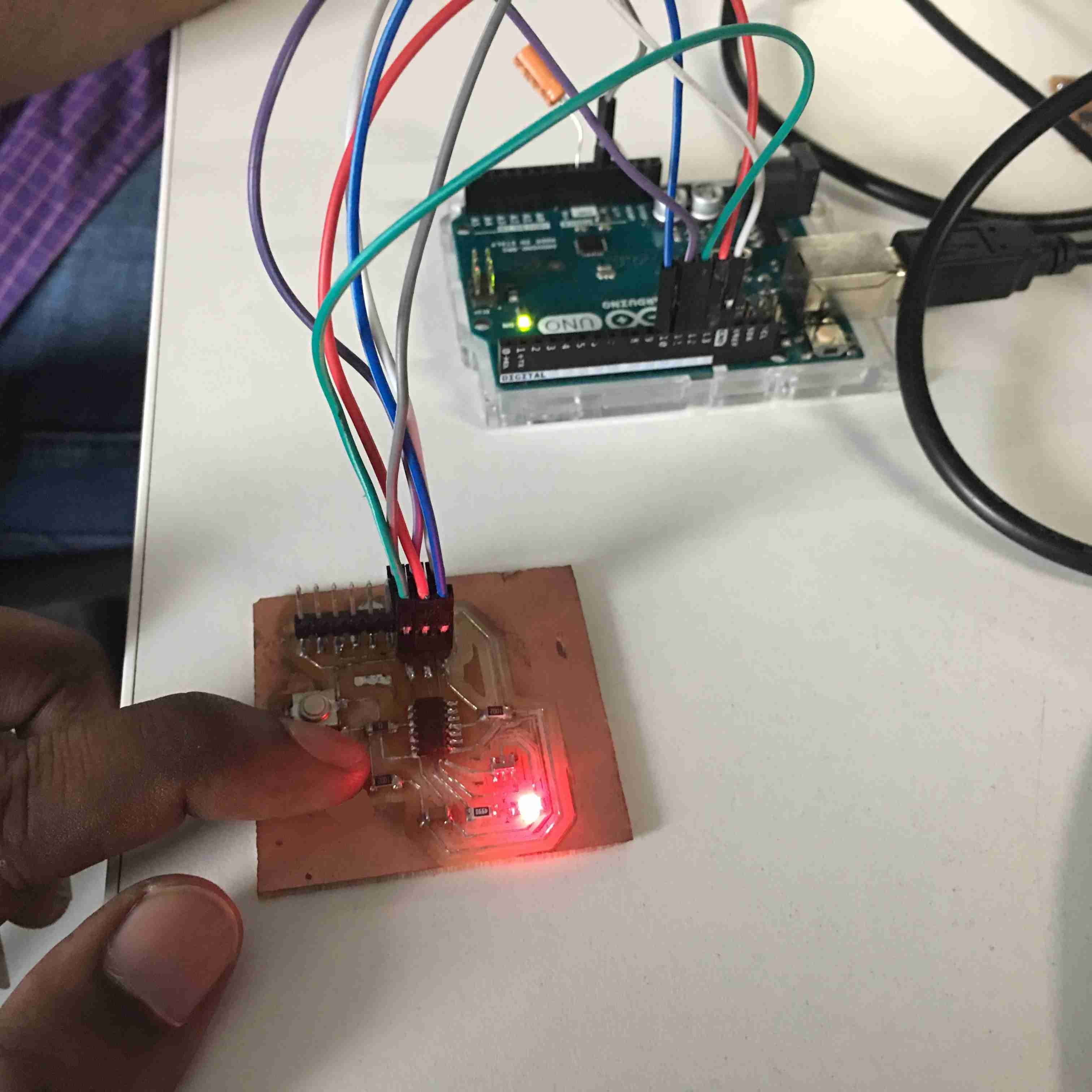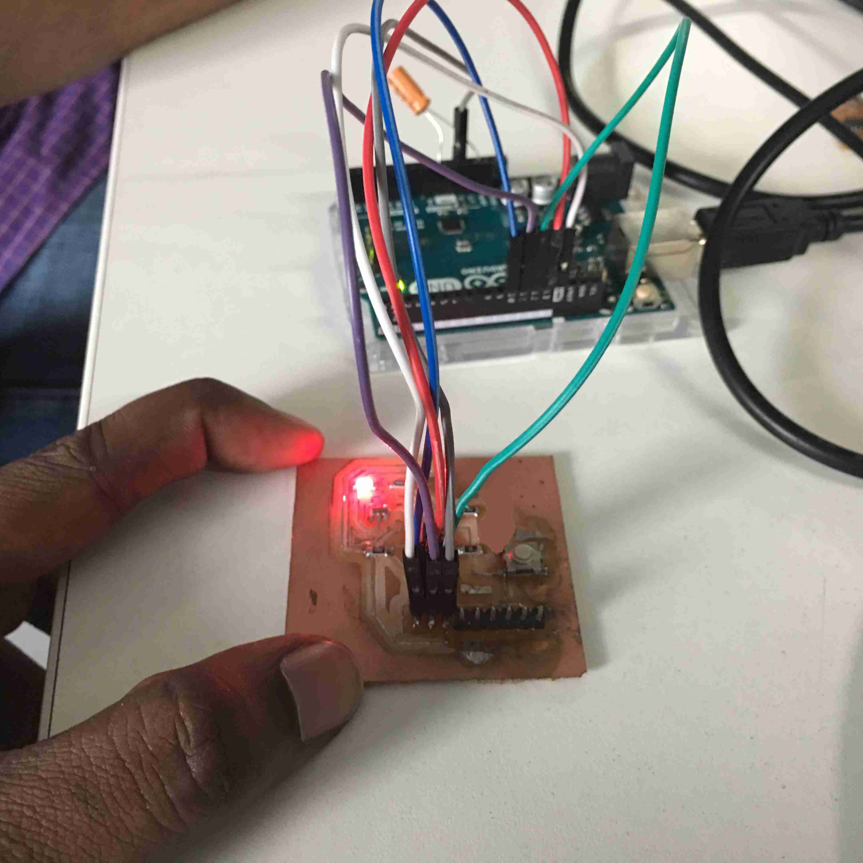 Step 6: Next I connected my Hello World board with the Arduino board as shown below. Using the USB cable I connected the Arduino to my computer again.