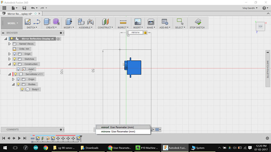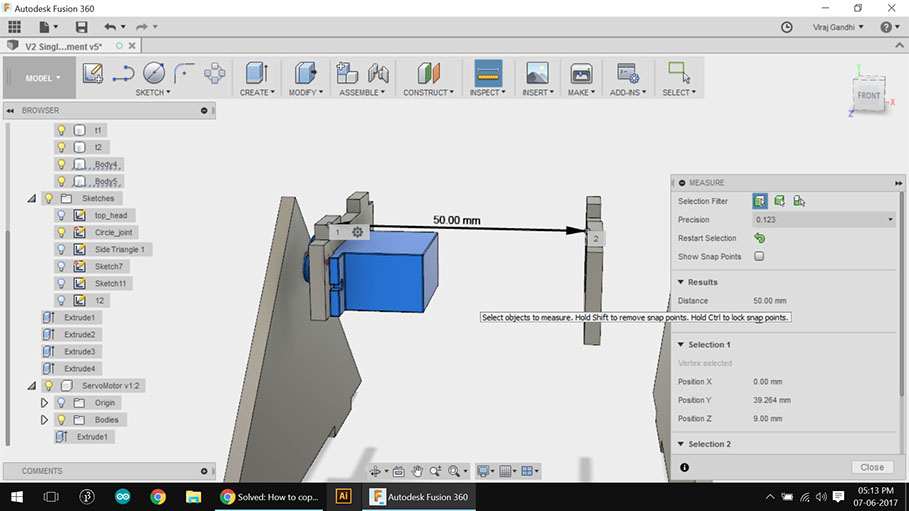 First I Imported and .STL File of SG90 Servo for Dimensions