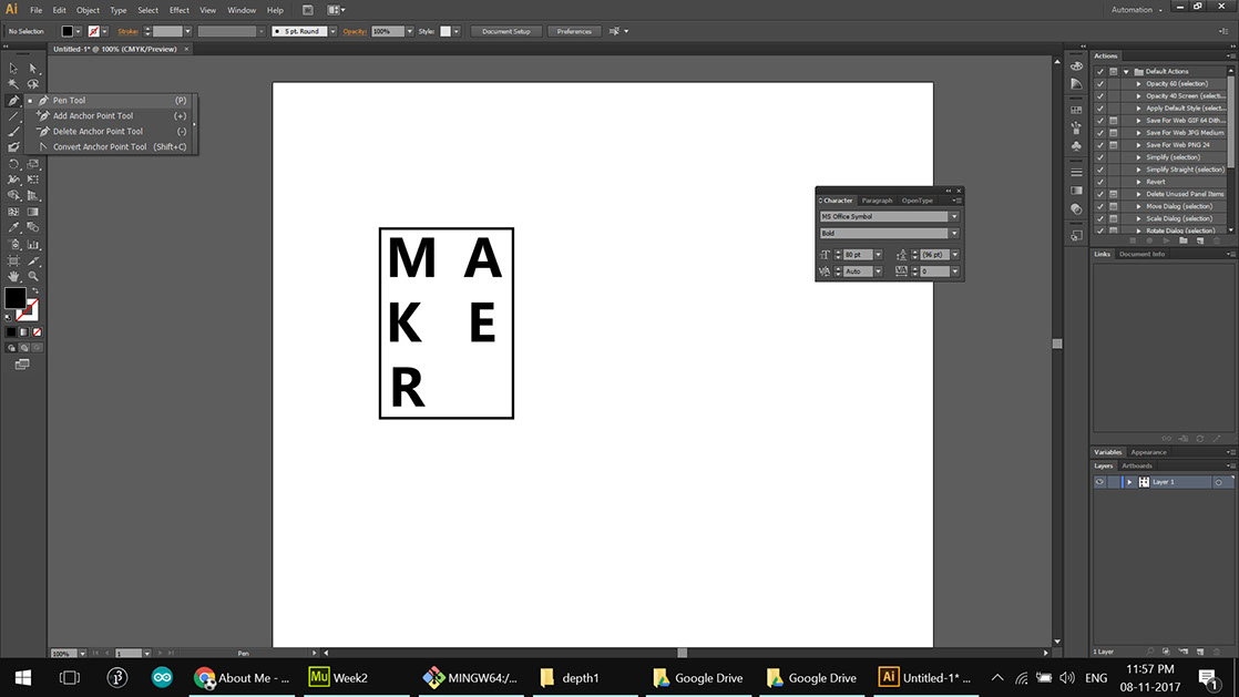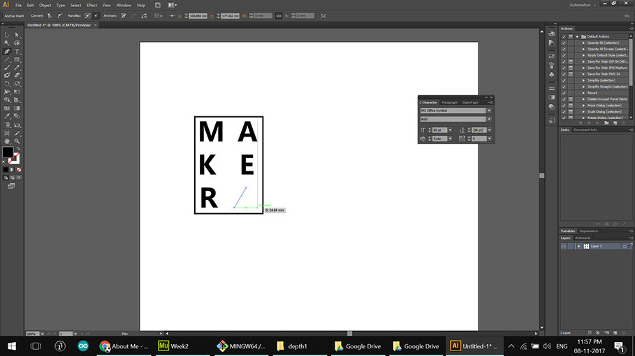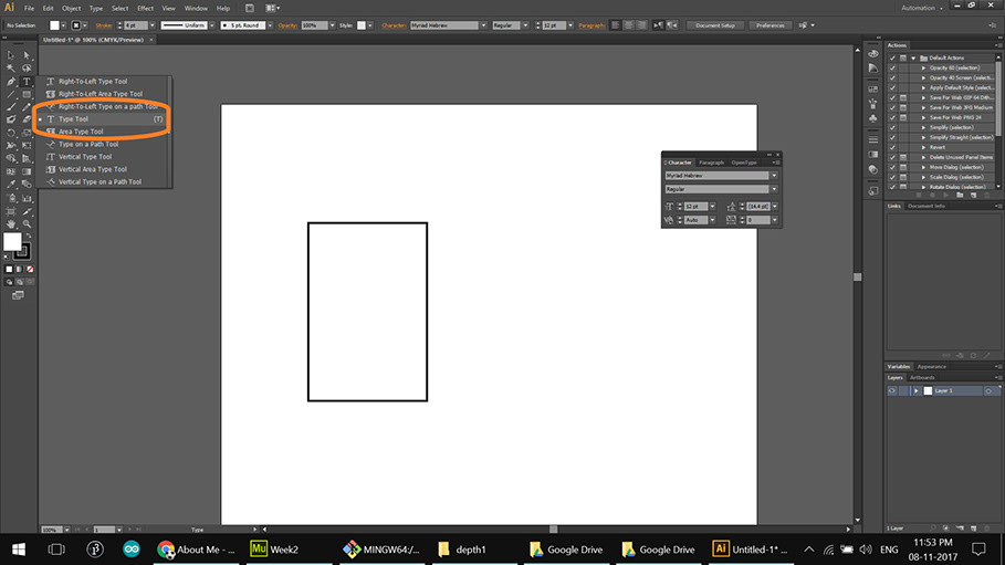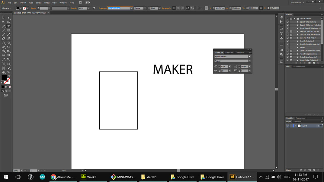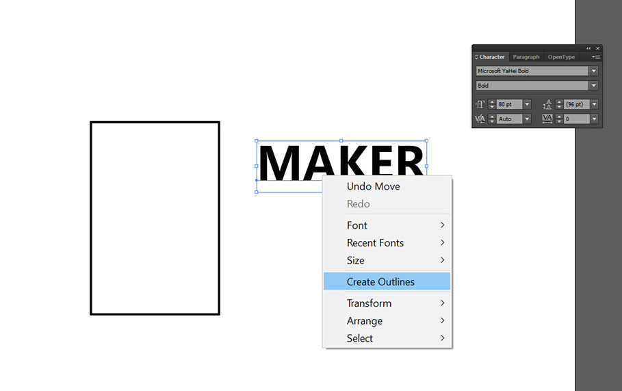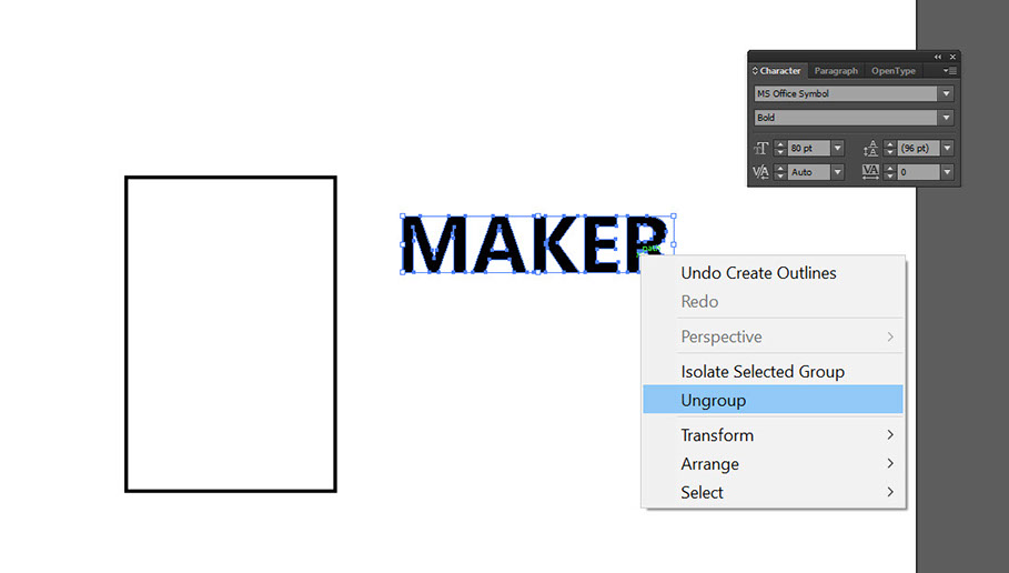 We cannot change font style after this step as it gets converted to a Vector Shape just like the Rectangle we Draw earlier.