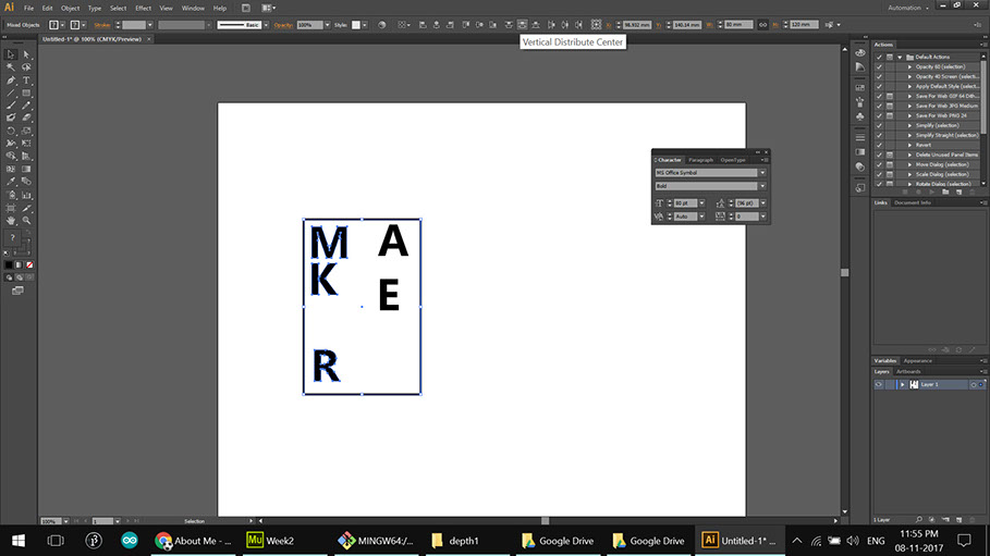 I used the Vertical Distribution tools to arrange letters. at equal distance.