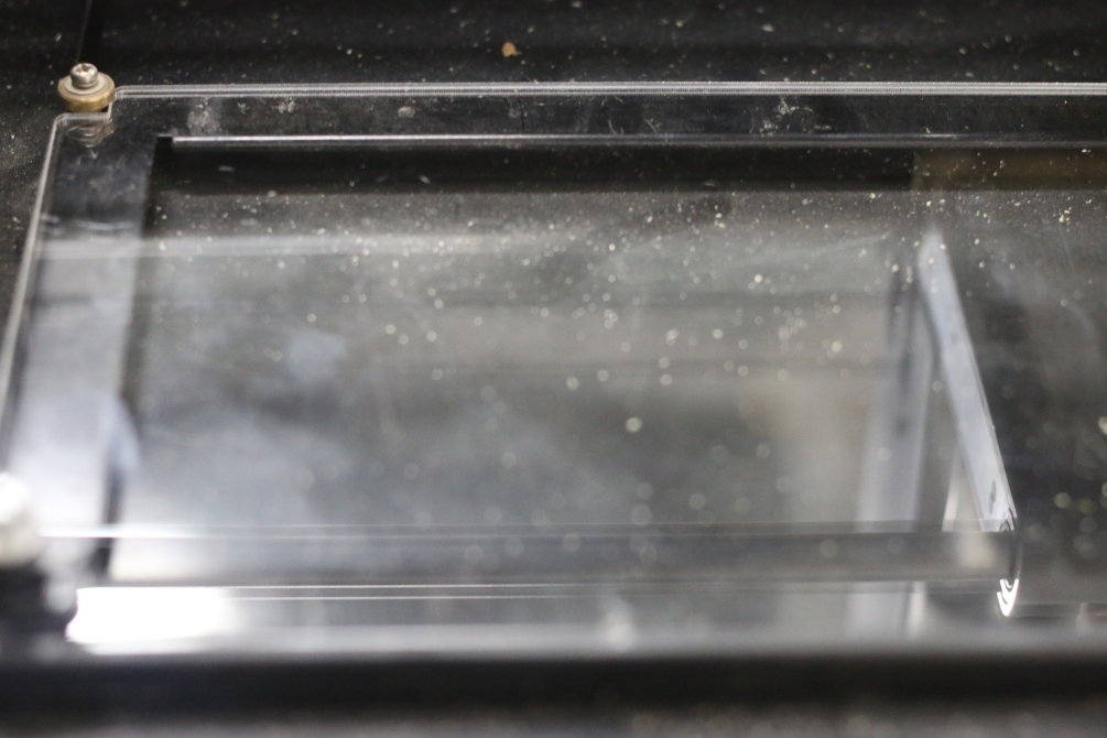 This week I'm using Modela Roland MDX-20 milling machine, it's a bit old version but it works fine (fingers crossed). First thing to do is to clean the bed of the machine. I have used the laser cutter to cut a new sacrifice layer -using 3mm acrylic- to get a clean finish.