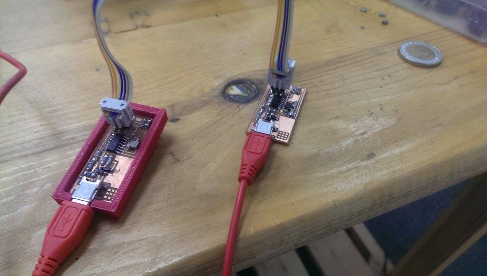 Connect the USB for the two boards, and connect the ISP cable.