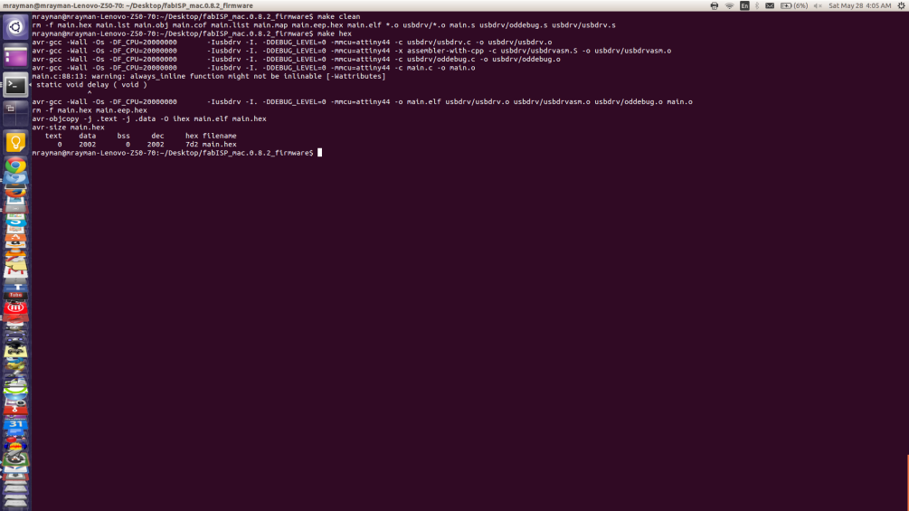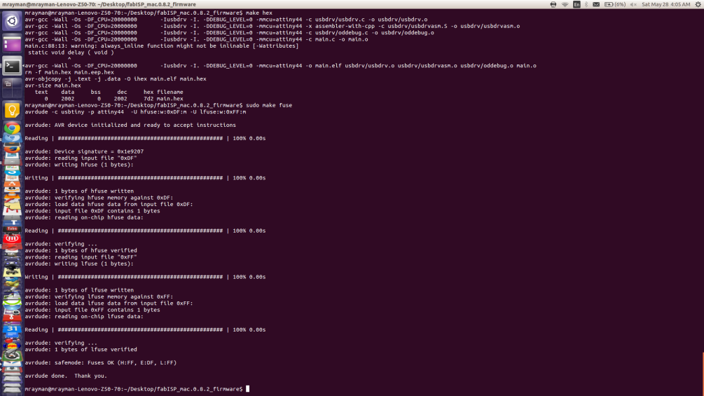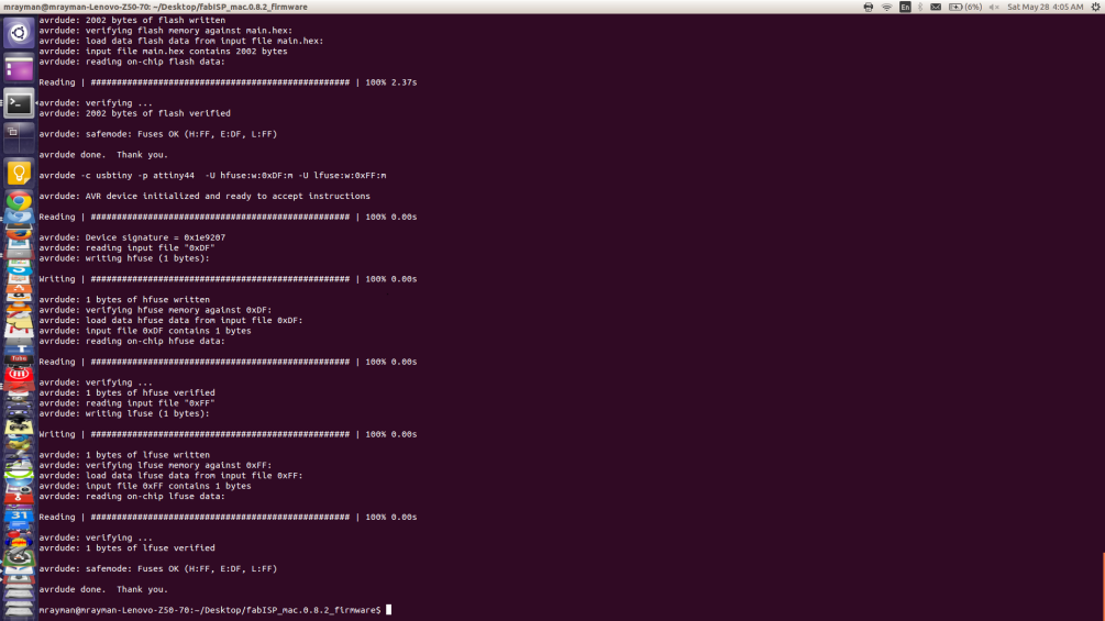 Now it's time to upload the firmware to the board. You will find the documentation made by Fab Academy here.. When you download the firmware to your machine, move to its the directory then follow the commands