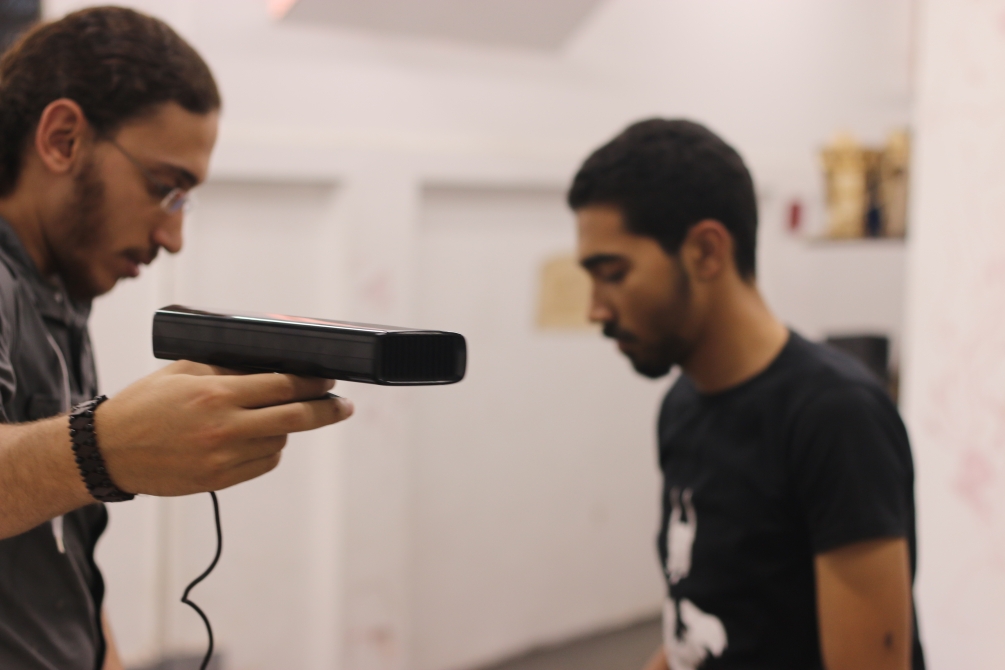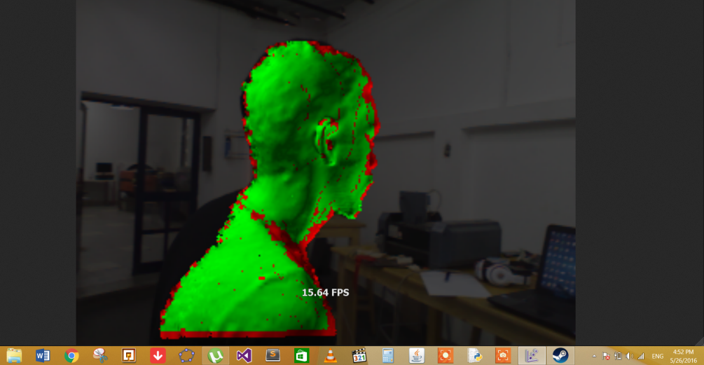 Luckily it was not a very busy day at the lab, and I had some volunters willing help me (I'm that handsome guy with a pony-tail). Make sure to take a full circle aroung the person/object that you are scanning, and keep checking the screen that your kinect is correctly capturing images.